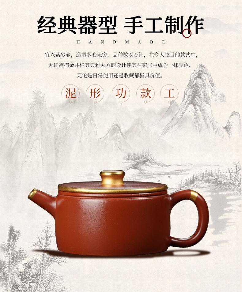Tetera Yixing Zisha Mineral Crudo Dahongpao Pozo Dorado Tetera Barra Hogar Boca Ancha Tetera Kung Fu