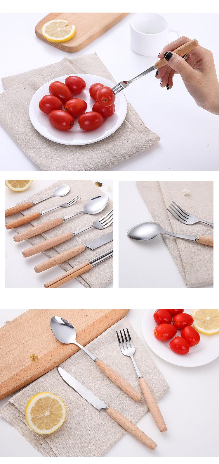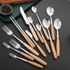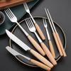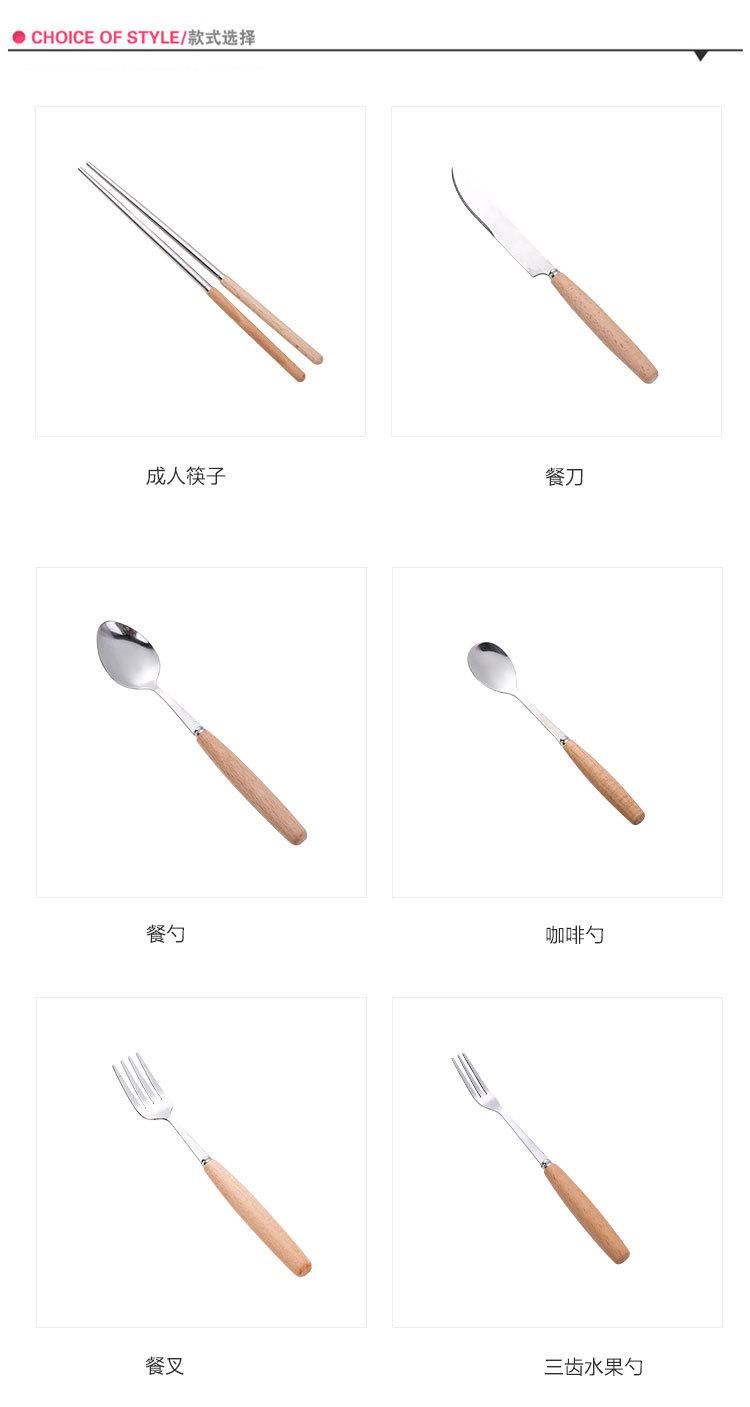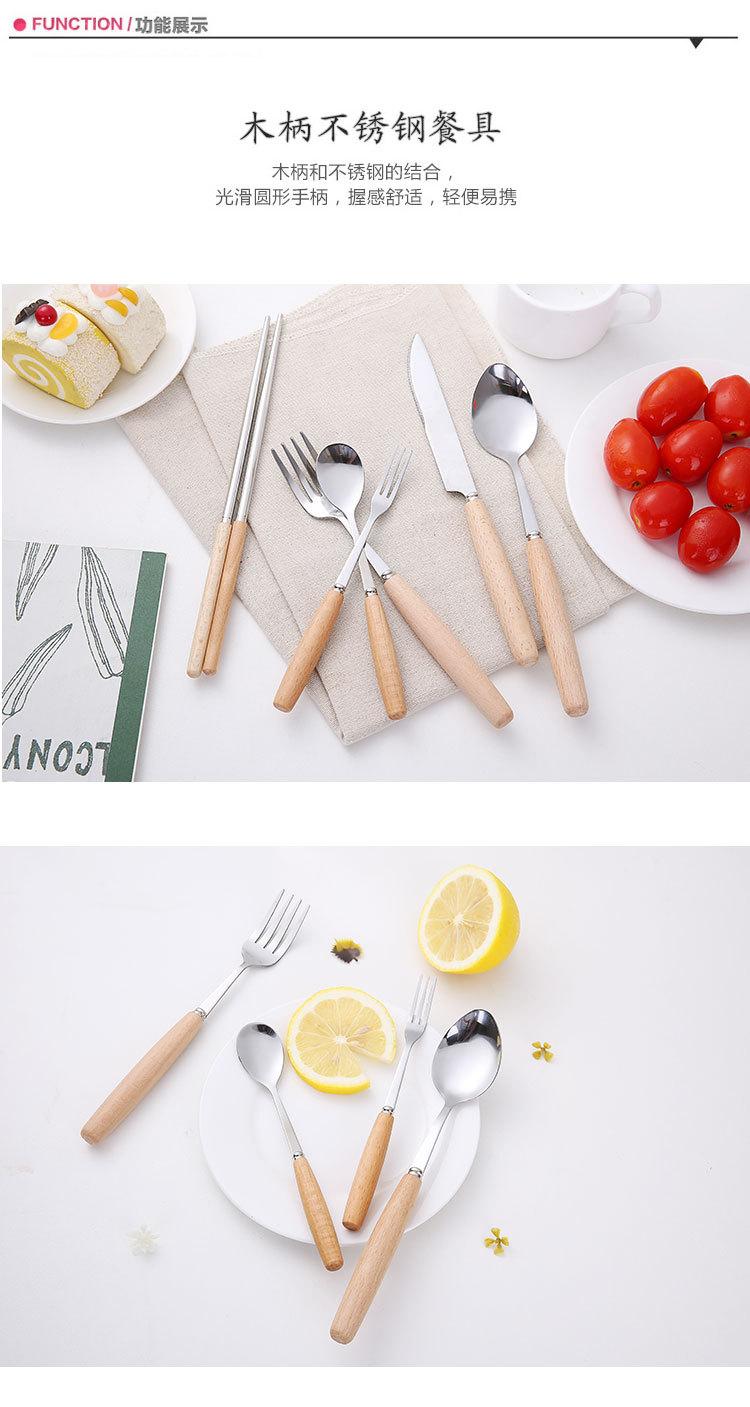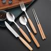 Palillos chinos con mango de madera de acero inoxidable, cucharas, vajilla para el hogar, fruta, postre, café, cuchara, tenedor, cuchillo y tenedor para carne occidental.