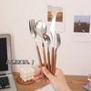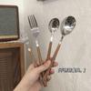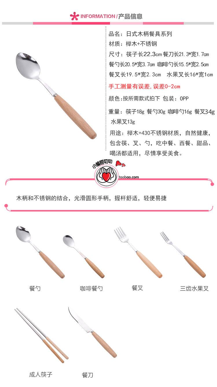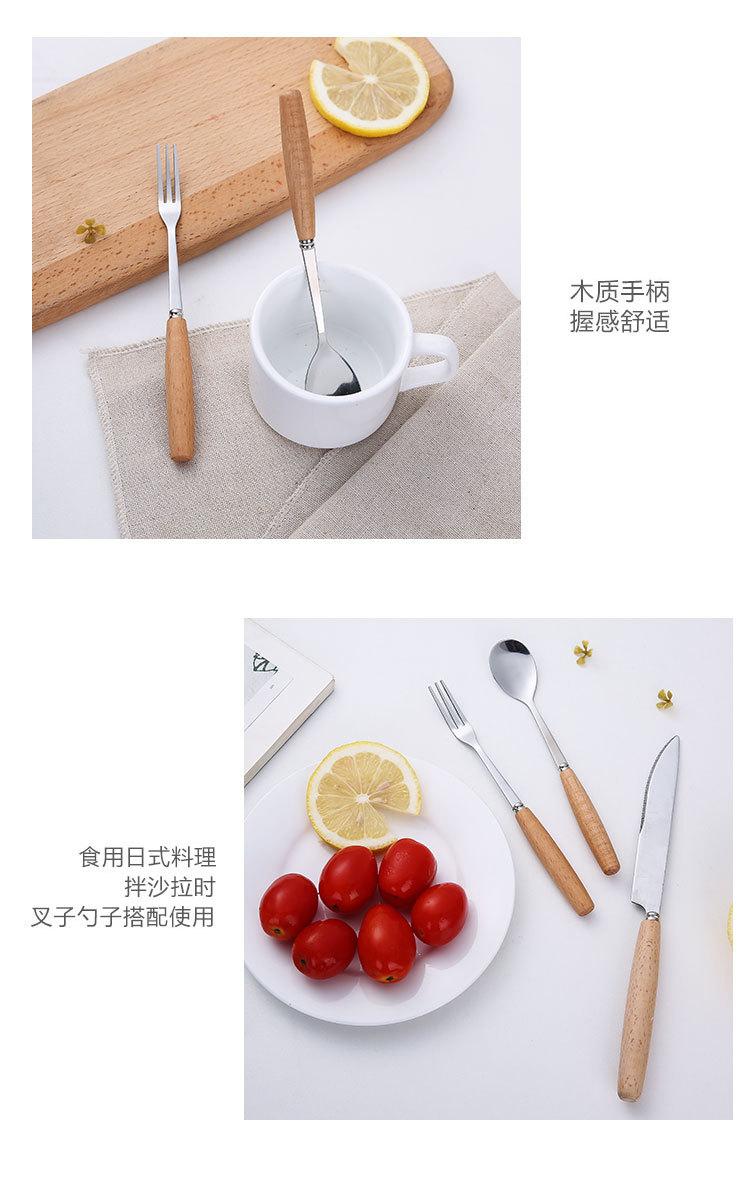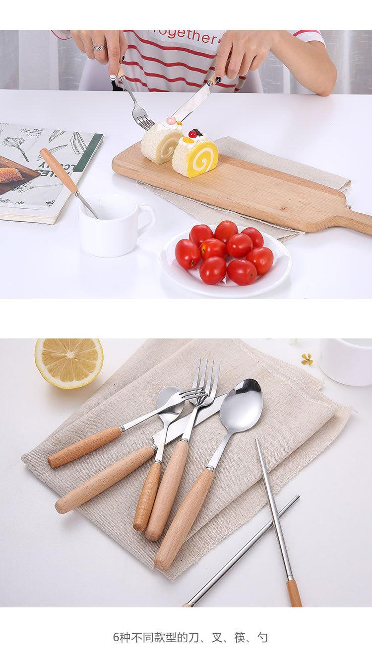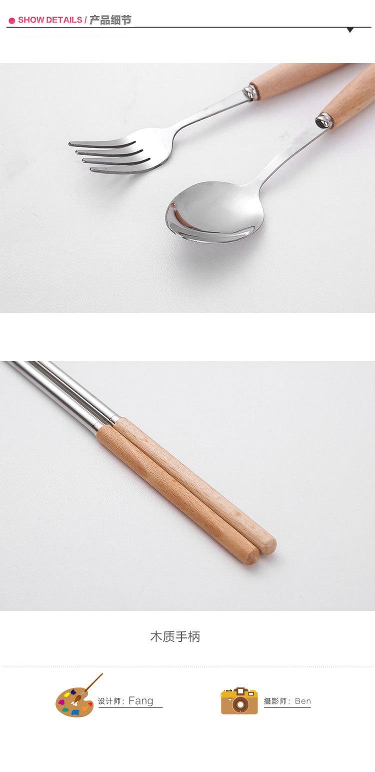 Palillos chinos con mango de madera de acero inoxidable, cucharas, vajilla para el hogar, fruta, postre, café, cuchara, tenedor, cuchillo y tenedor para carne occidental.