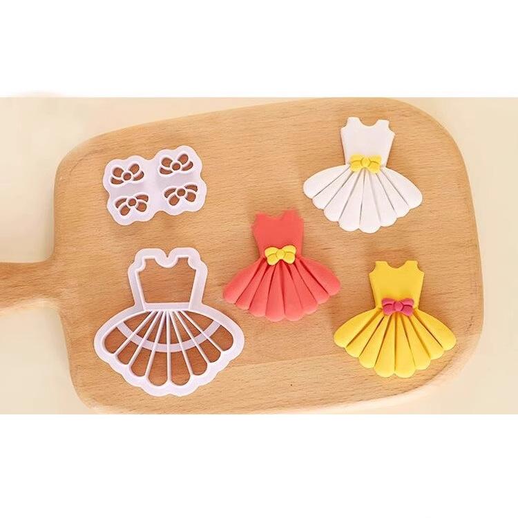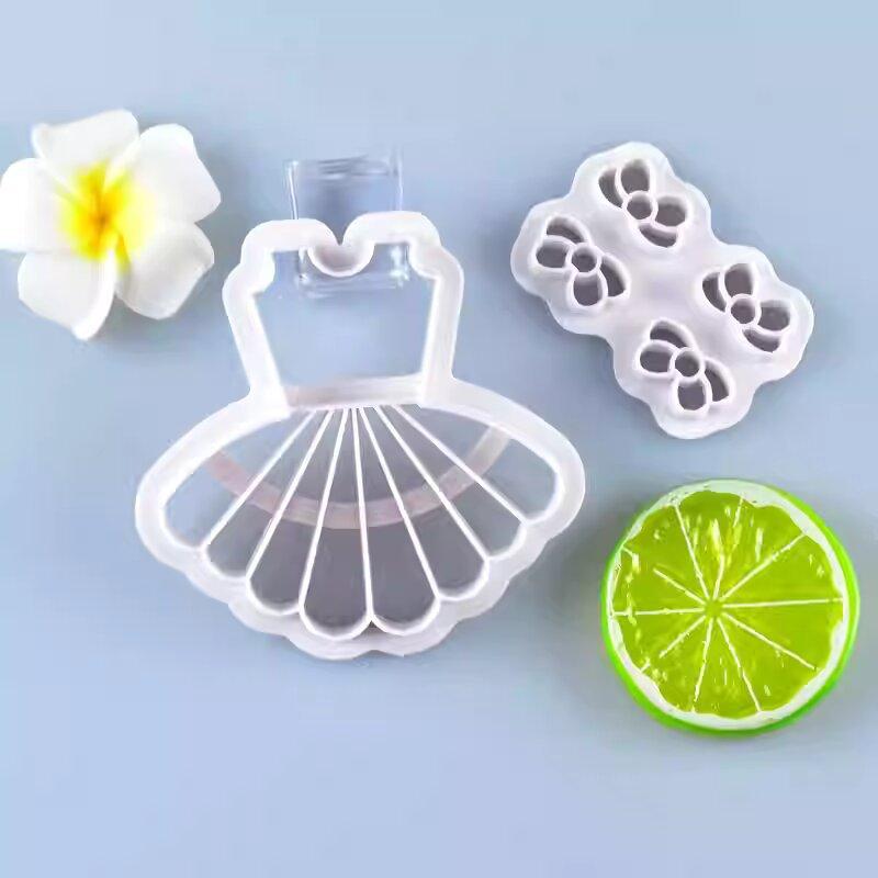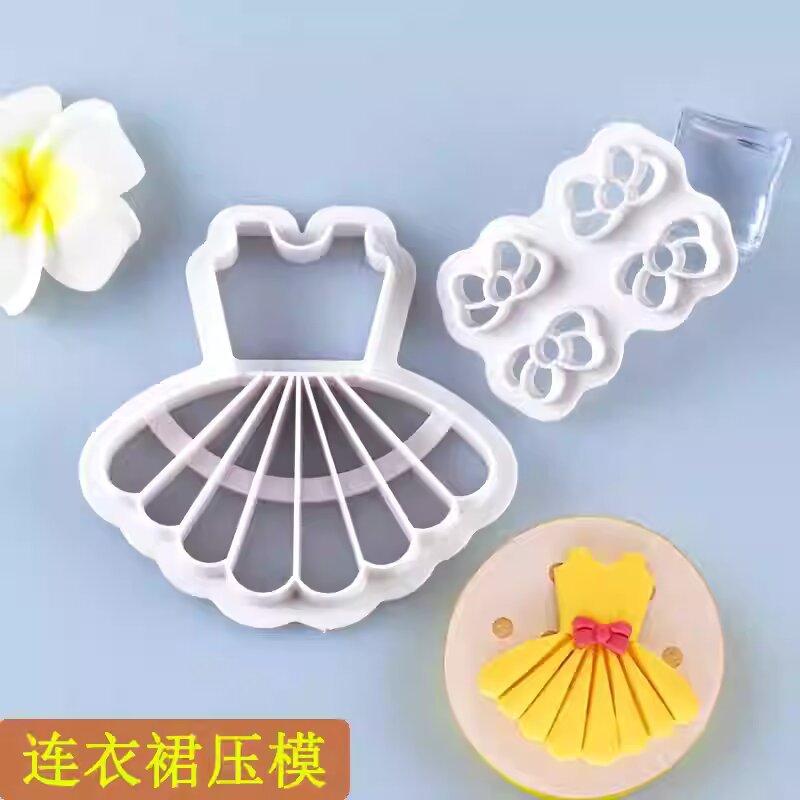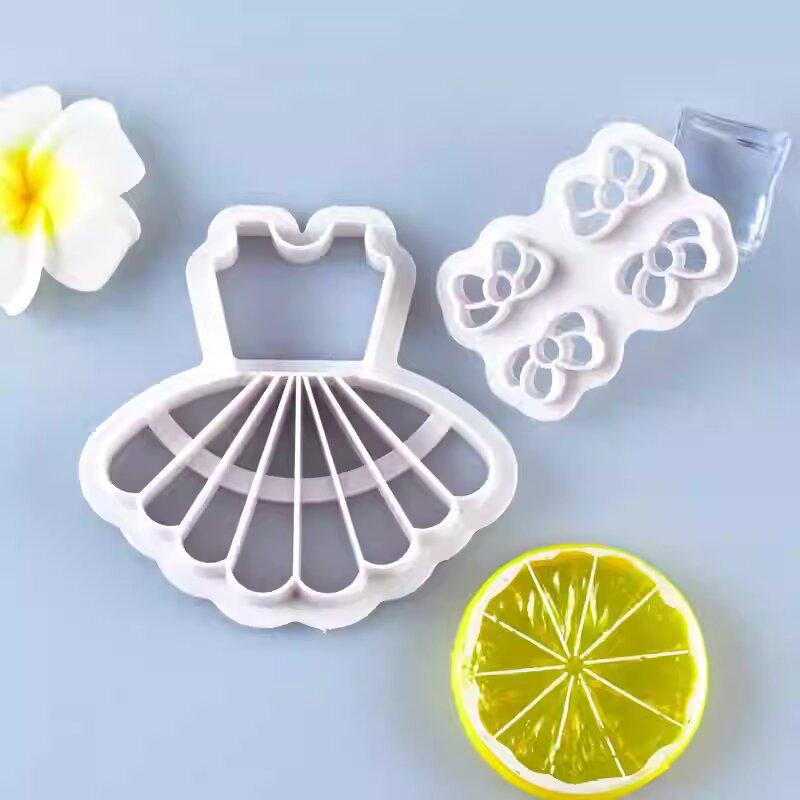 Molde para galletas de pastelería para alimentos complementarios para niños, vestido de lazo, decoración de pasteles, prensa de azúcar para impresión, herramienta para hornear