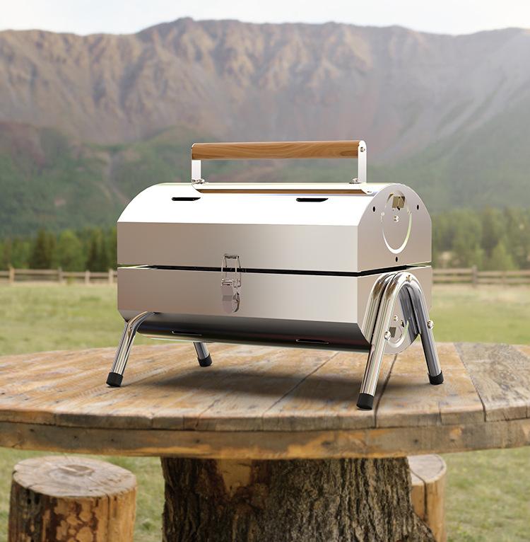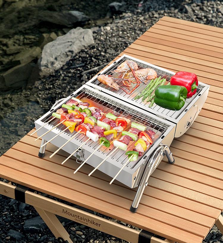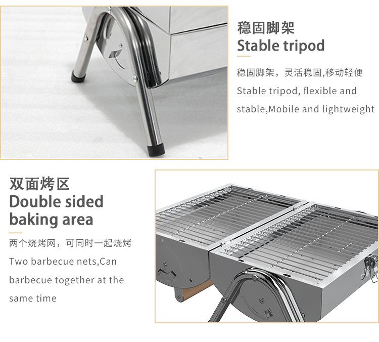 Barbacoa portátil de acero inoxidable de doble cara para uso doméstico, plegable, de carbón, para exteriores