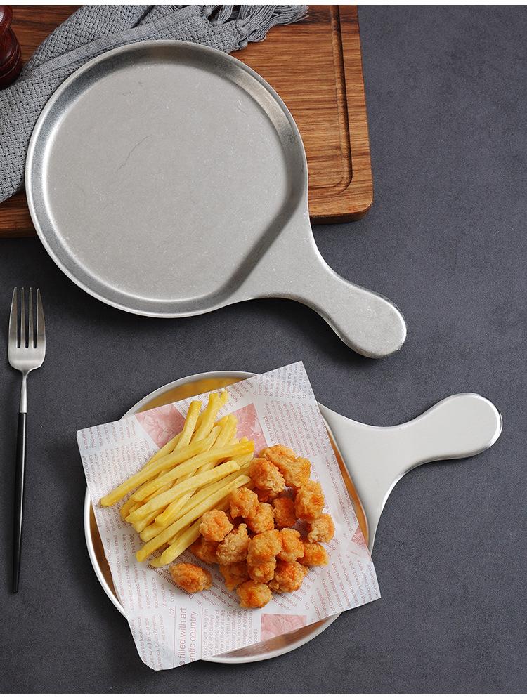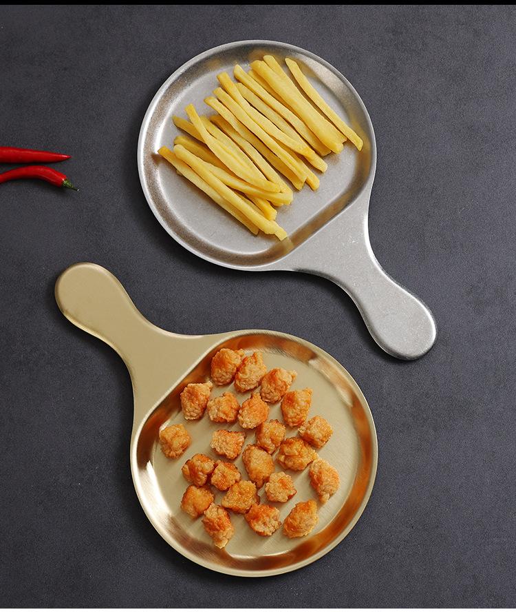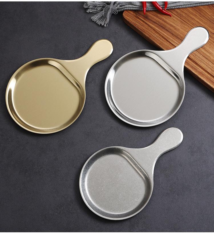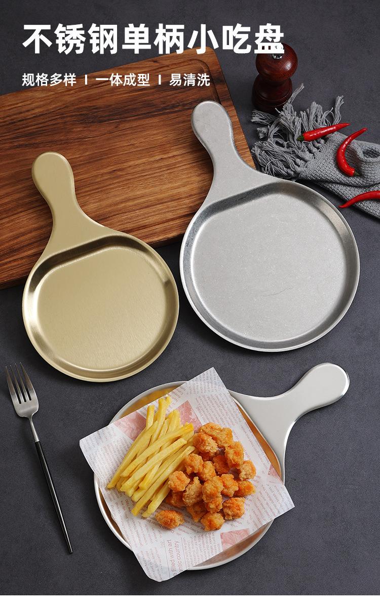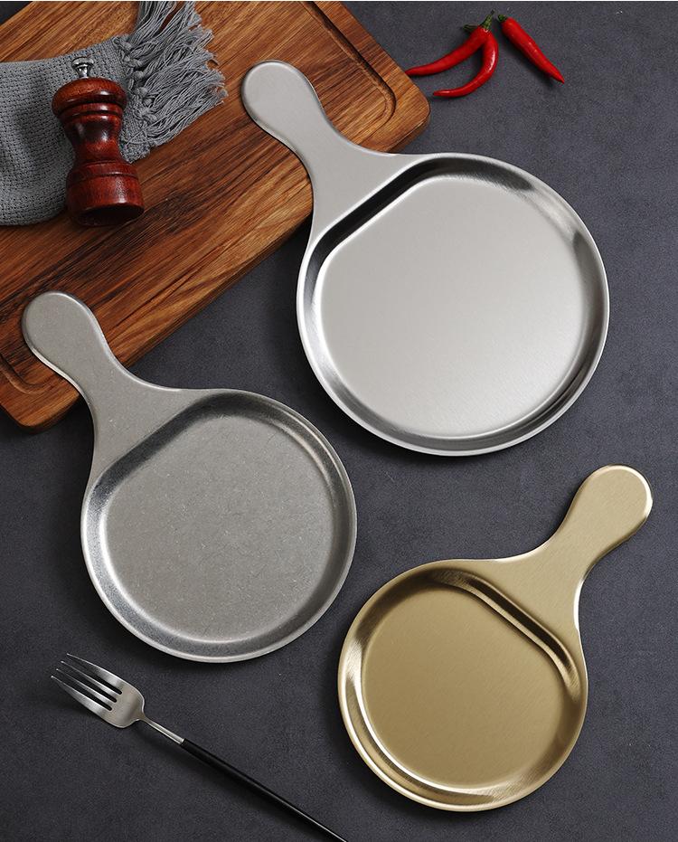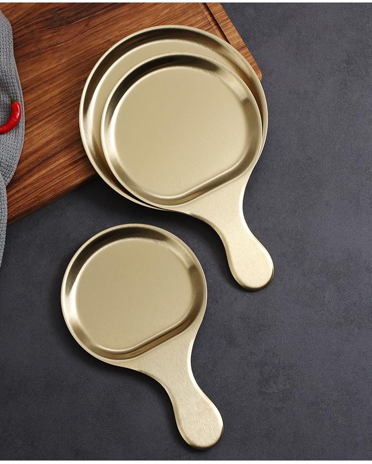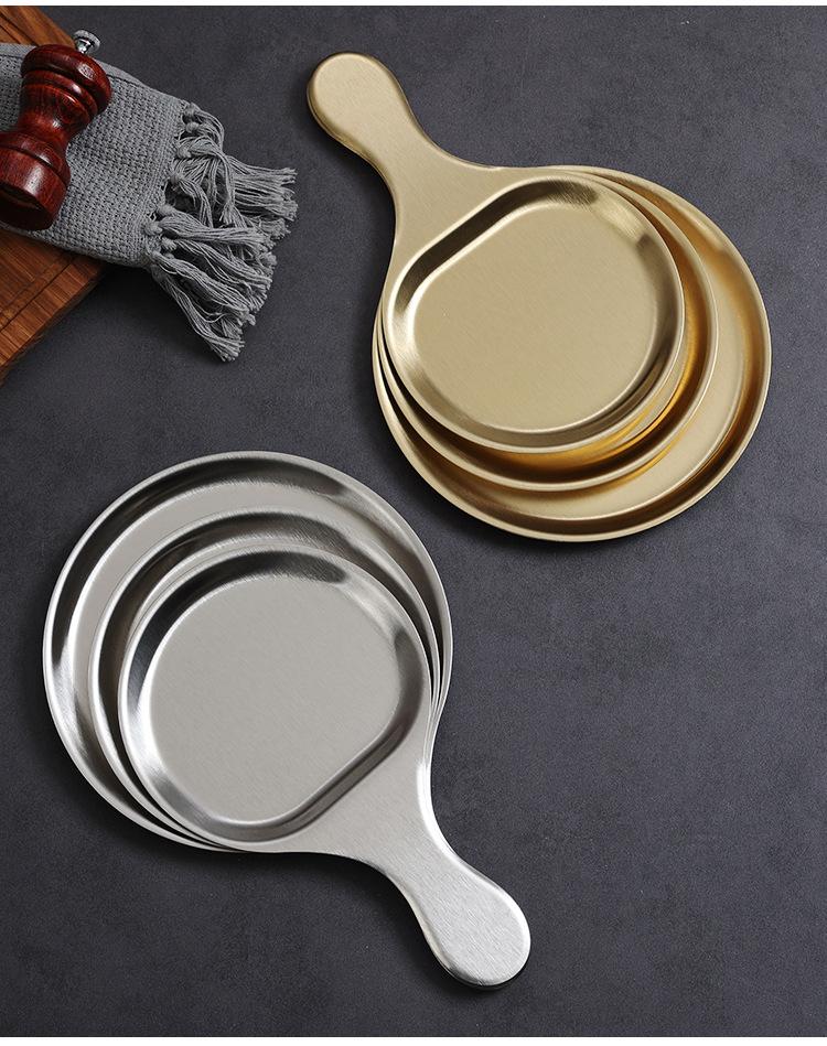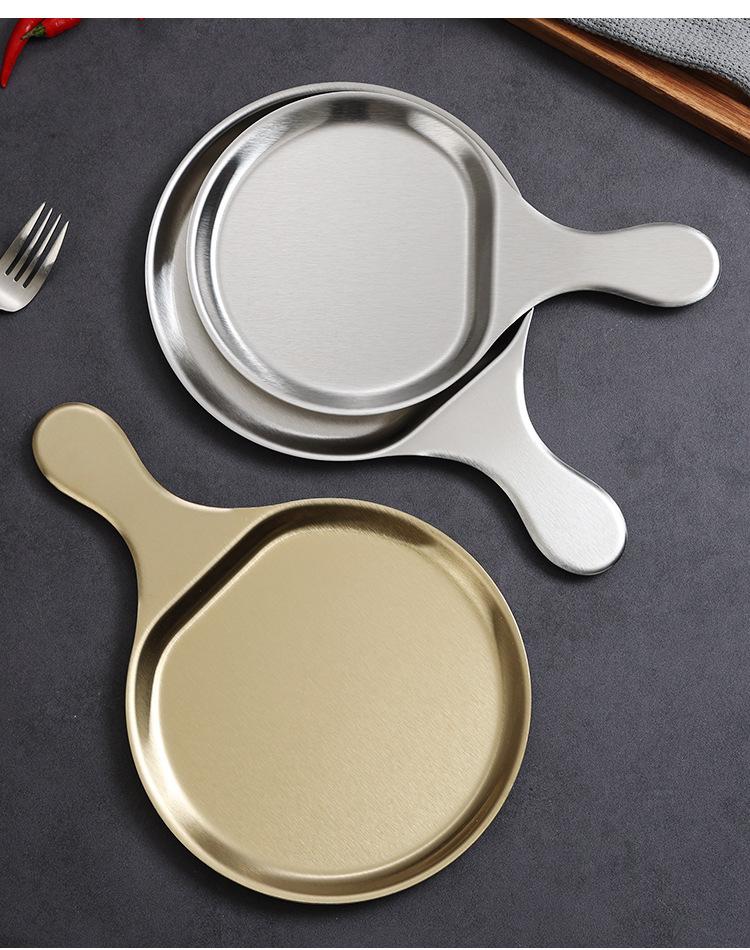 Compra Plato redondo de acero inoxidable estilo coreano creativo, plato para carne estilo occidental, plato para barbacoa de fondo plano dorado, bandeja para aperitivos, plato para cena al por mayor en Joom.pro