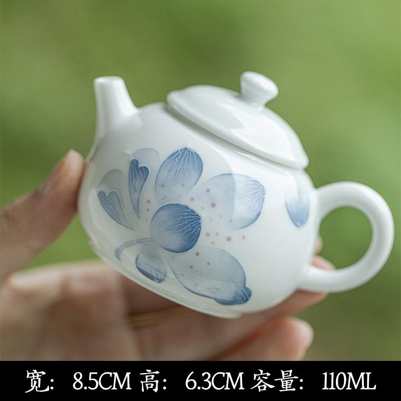 Mo Ji Yingqing Youtian Juego de Té Kung Fu Pintado a Mano de Pétalos de Loto Ardiente Tazón con Tapa de Cerámica Tetera Taza de Té Olla Accesorios de Soporte Colección