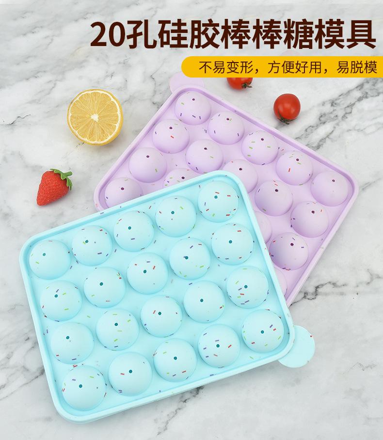 Molde de silicona sólida redonda de 20 agujeros para piruletas, caramelos, chocolate, molde para hornear pasteles de chocolate
