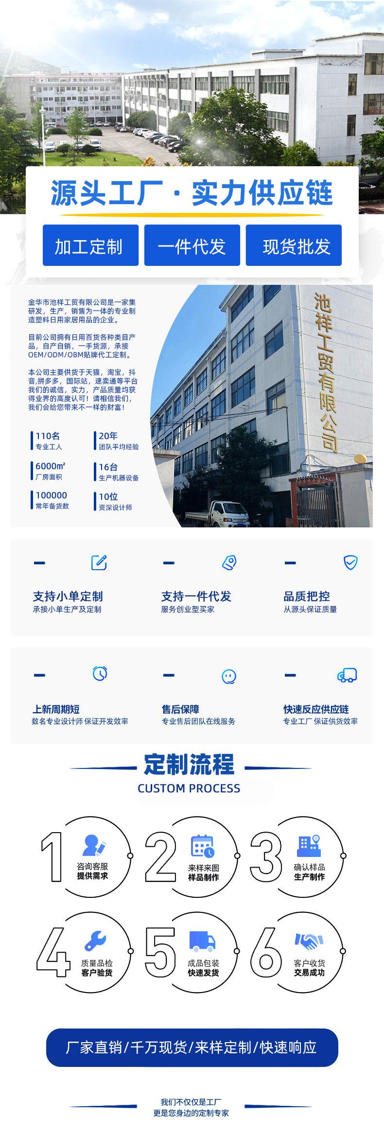 Perfil de la empresa: Jinhua Chixiang Industry and Trade Co., Ltd. ocupa una superficie de 6.000 metros cuadrados, con una capacidad de producción diaria de 10.000 unidades y un inventario de más de 5 millones. Produce principalmente portacepillos de dientes, estantes para baño, parabrisas para aire acondicionado, artículos de cocina, cubos para arroz y otros productos generales. Prioriza la calidad de sus productos y mantiene una larga colaboración con Midea y Joyoung para la fabricación de equipos originales (OEM). Garantizamos calidad, alta calidad y precios bajos. Esperamos colaborar con usted.