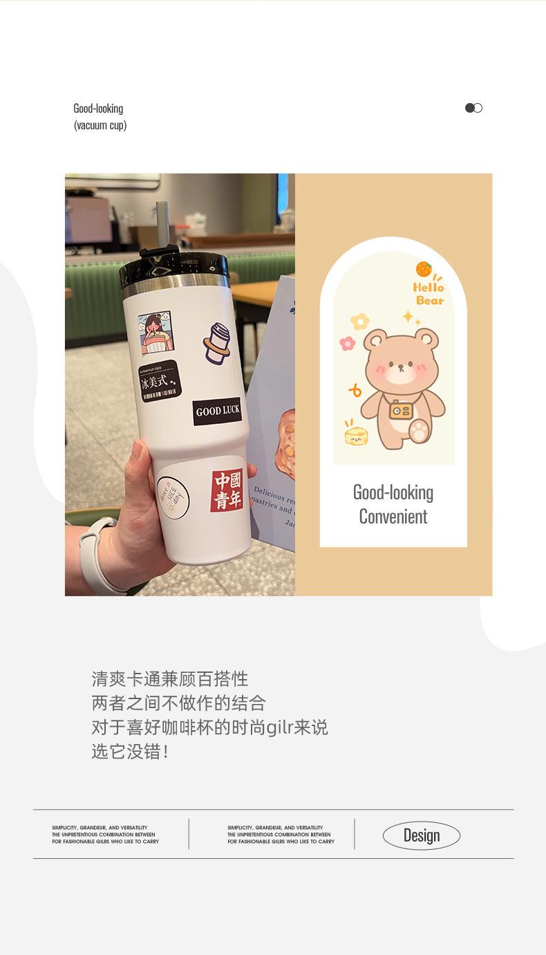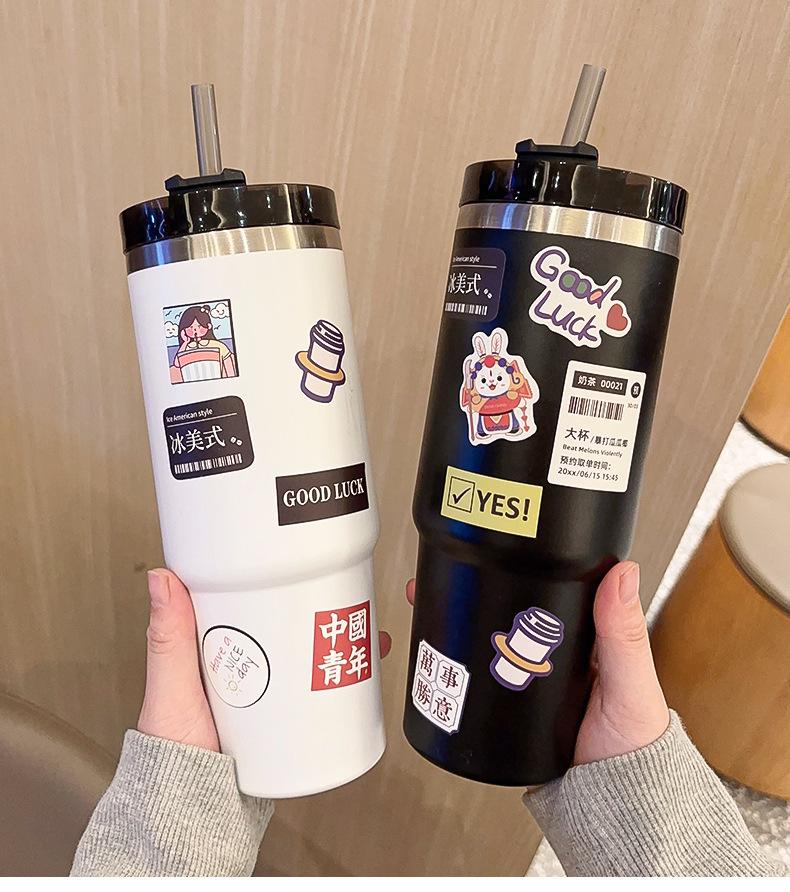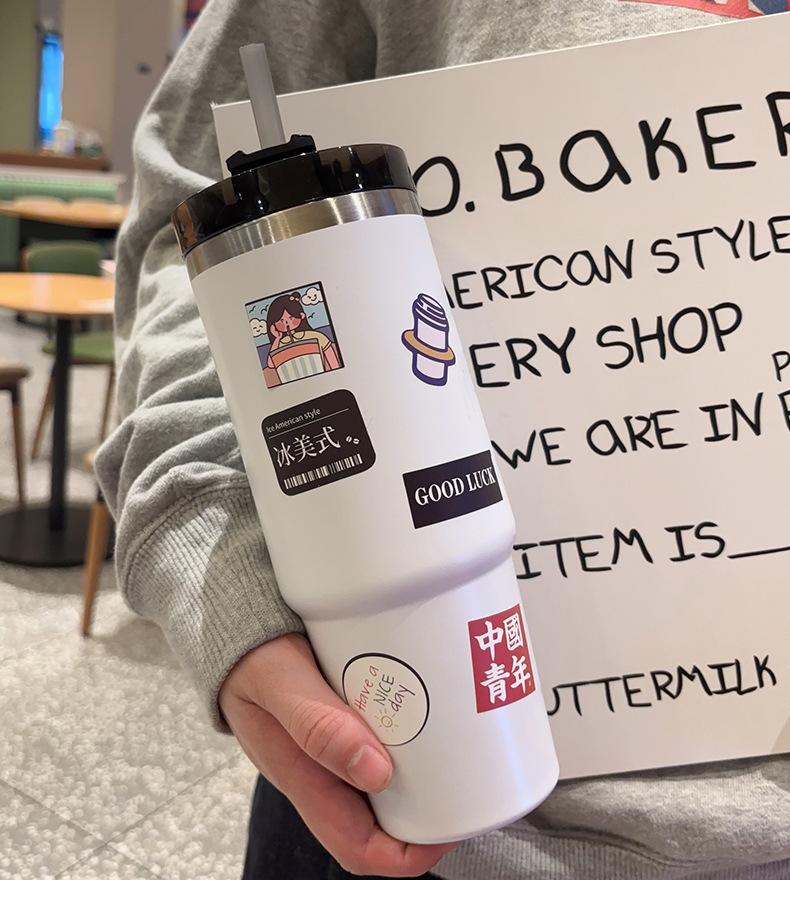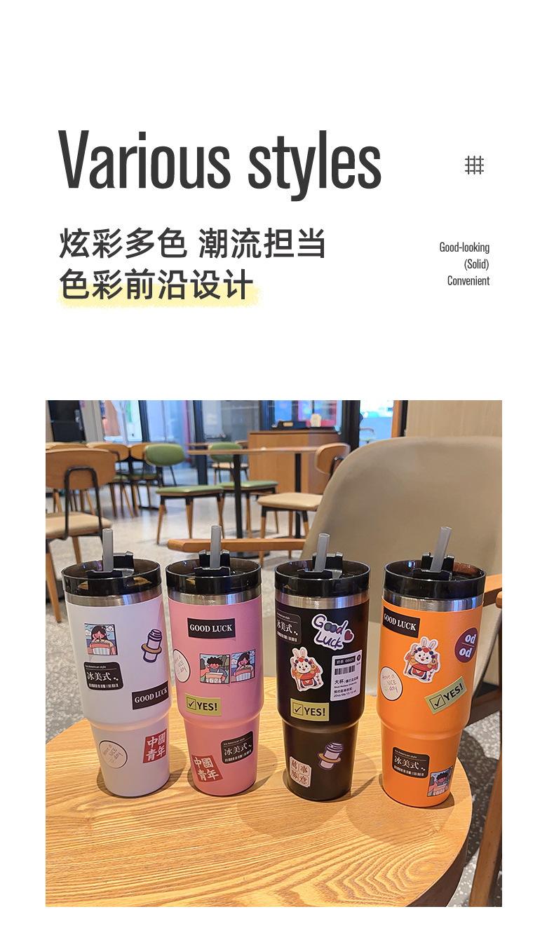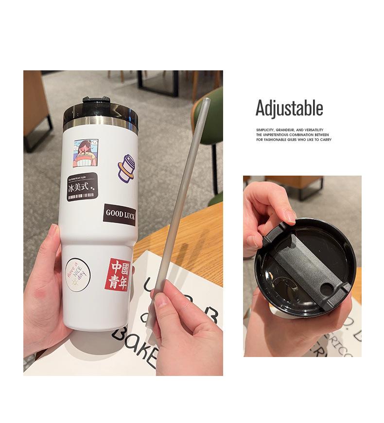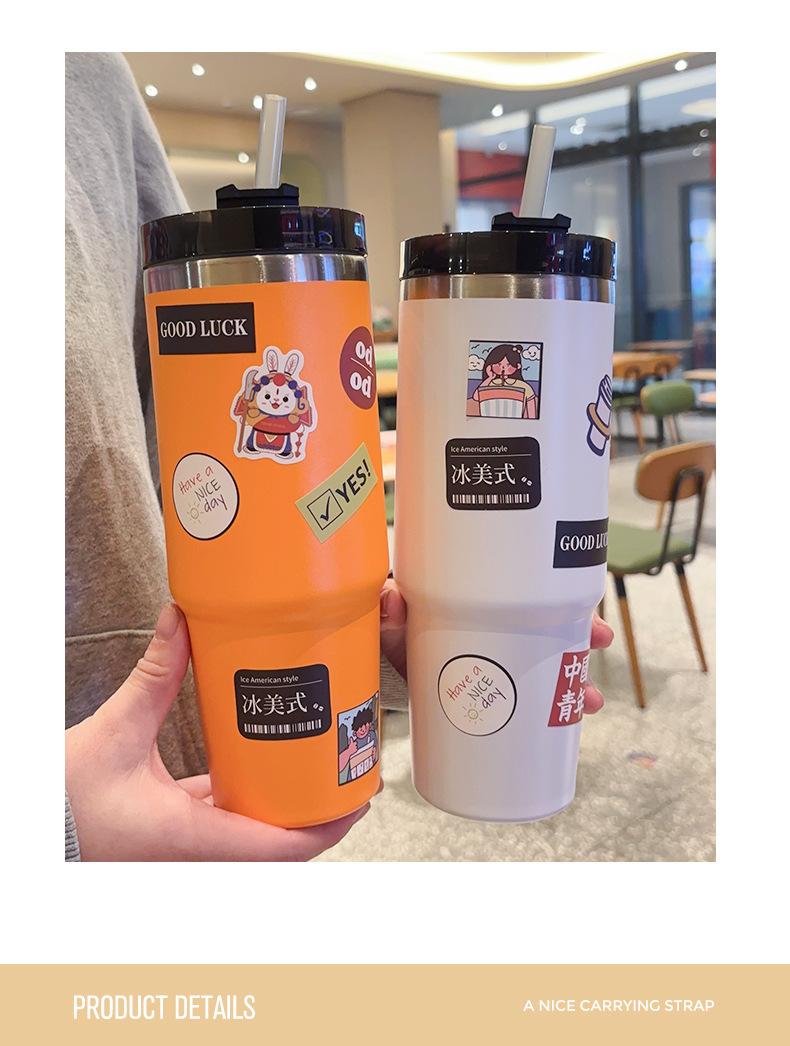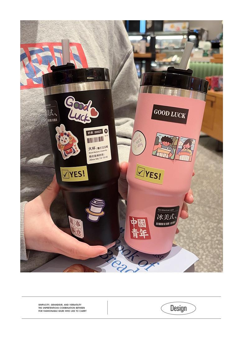 Taza de acero inoxidable con pajita de gran capacidad para intimidación de hielo, 890 ml * 1
