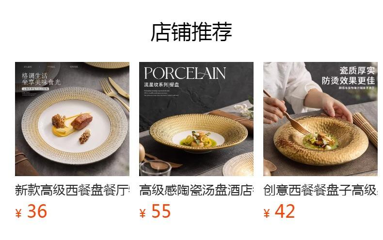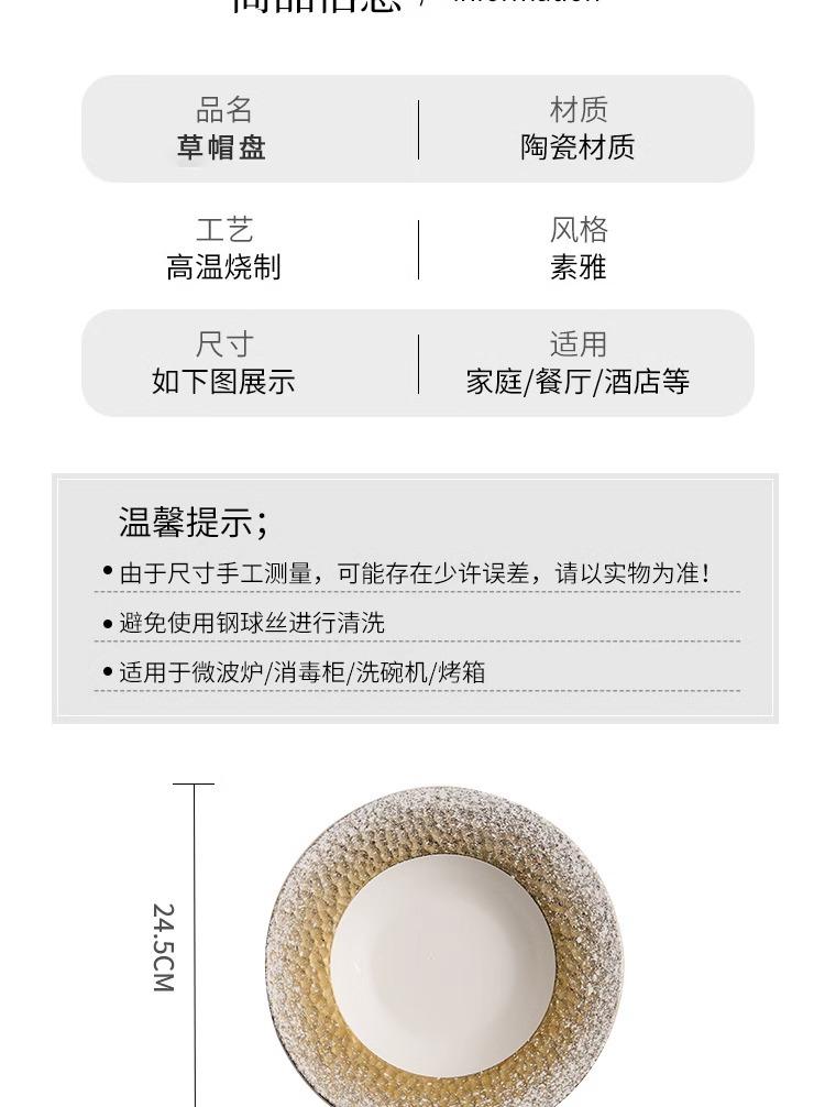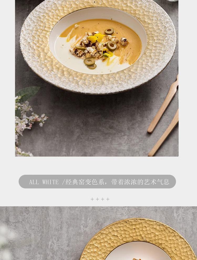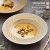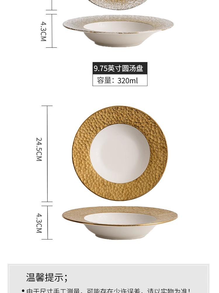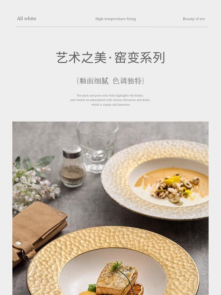 Plato de cerámica creativo para cena, vajilla de hotel, venta al por mayor, restaurante, plato de sopa occidental dorado, plato de ensalada premium 2024