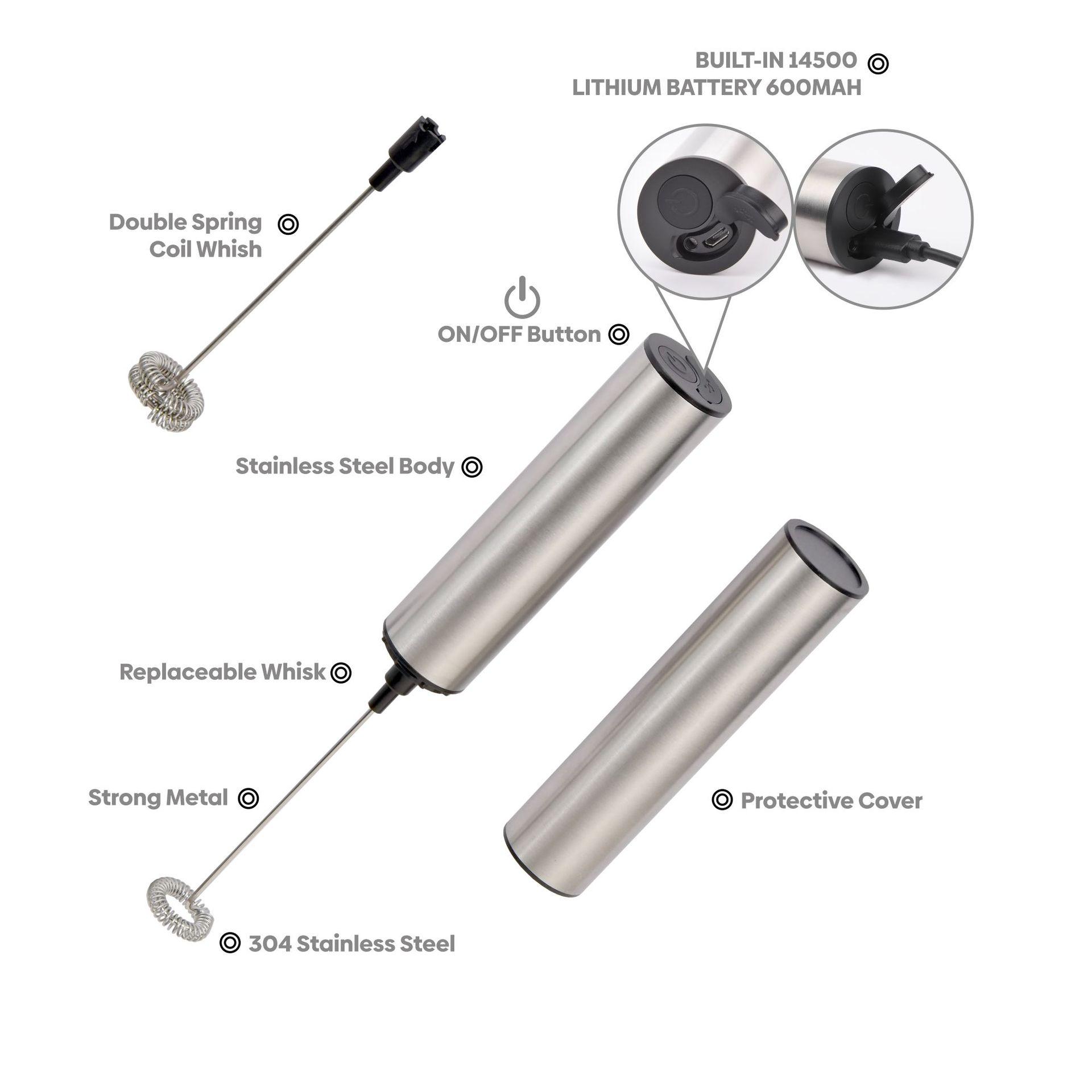 Espumador de café recargable, eléctrico, para el hogar, con tapa de leche, miniespumador de leche de mano