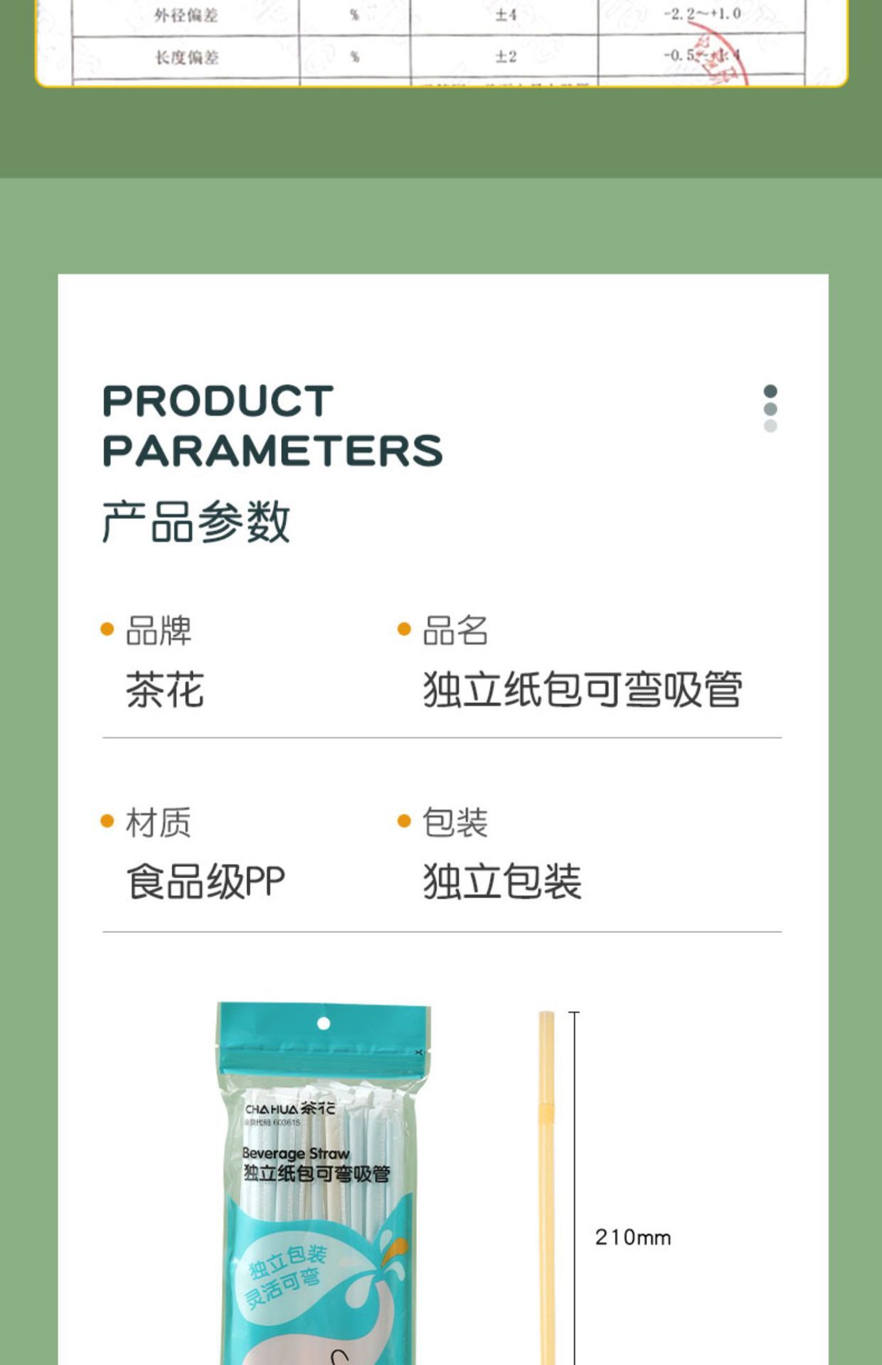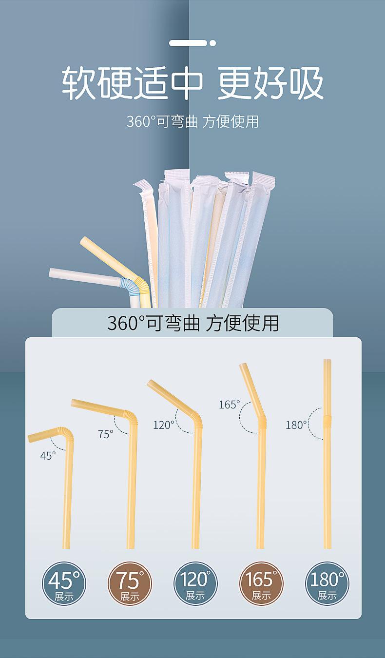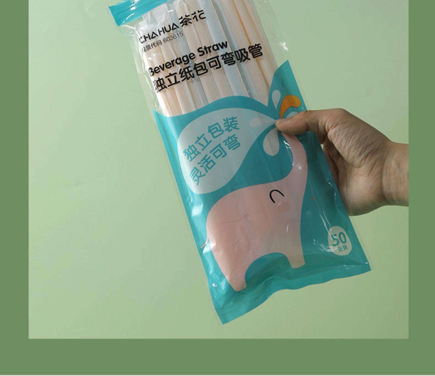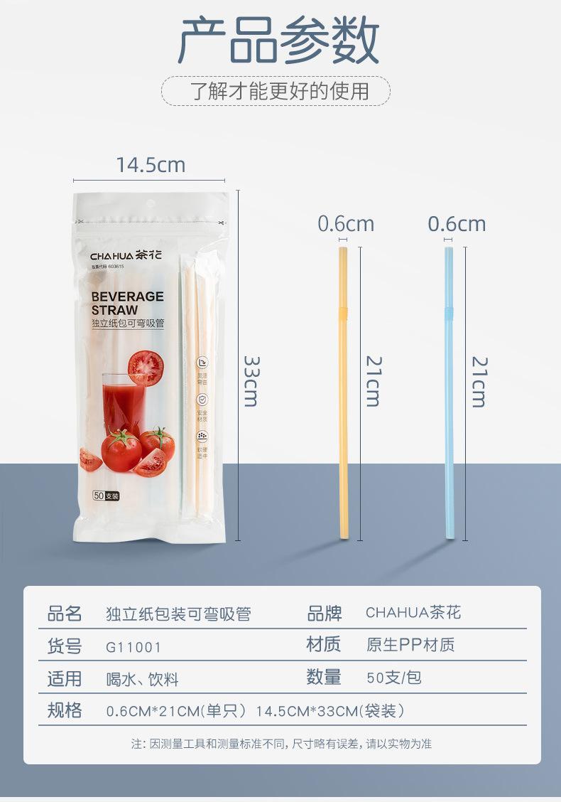 Pajita desechable Camellia PP, embalaje individual, para leche, té, bebida, translúcida, curvable, para jugo, pajita de plástico