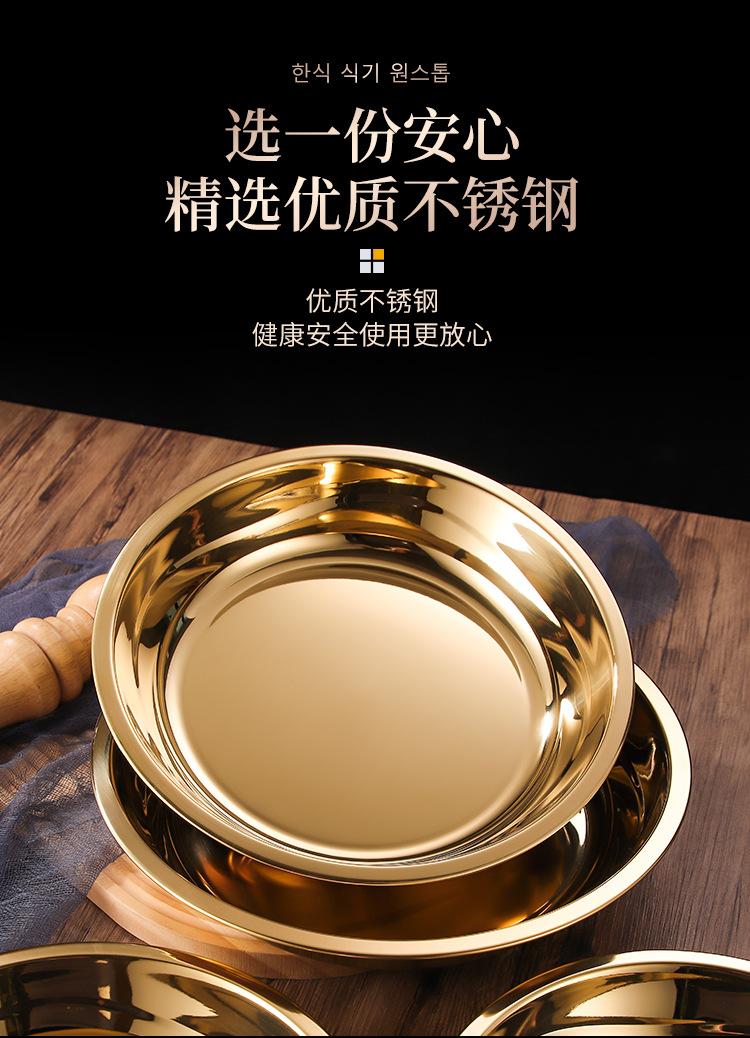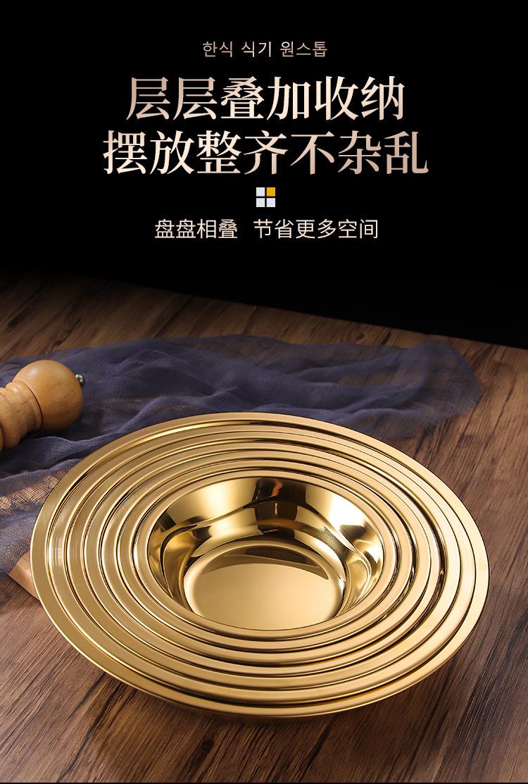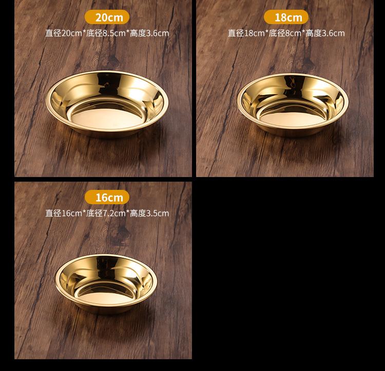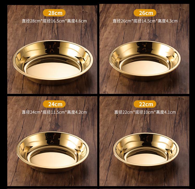 Plato de fruta de disco de acero inoxidable dorado, plato doméstico, plato de barbacoa, plato para pastel, plato acondicionador de cocina