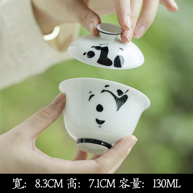Juego de té de kung fu pintado a mano con diseño de panda ardiente de Mo Ji Yu Ni Youtian, cuenco con tapa de cerámica, tetera, taza de té, olla, accesorios de colección
