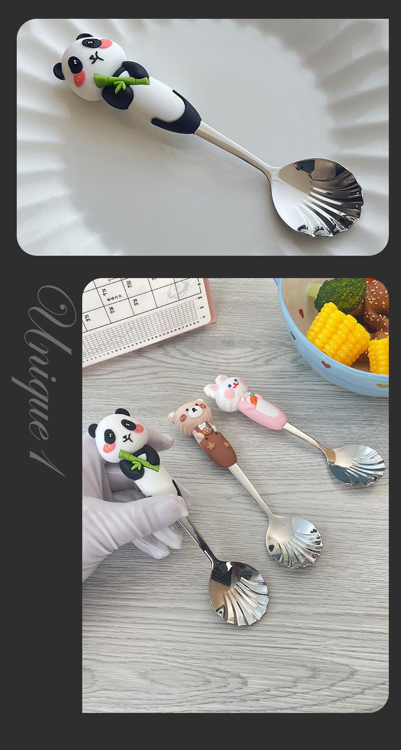 Cuchara infantil de acero inoxidable 304 de grado alimenticio, linda cuchara pequeña de dibujos animados, cuchara para comida complementaria para bebés