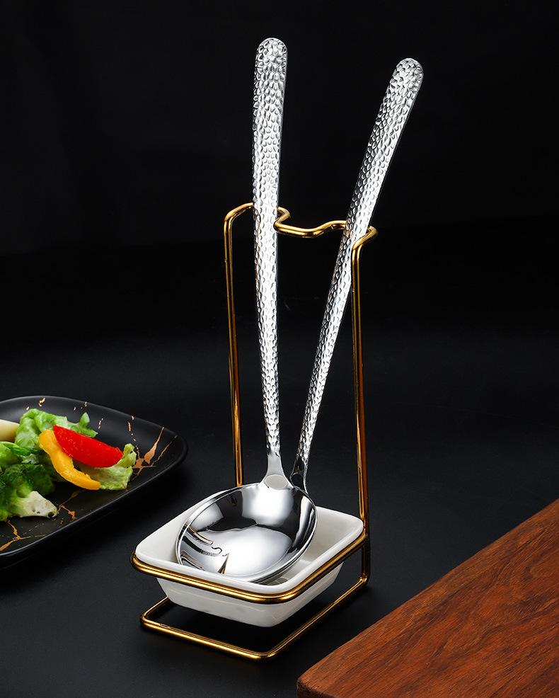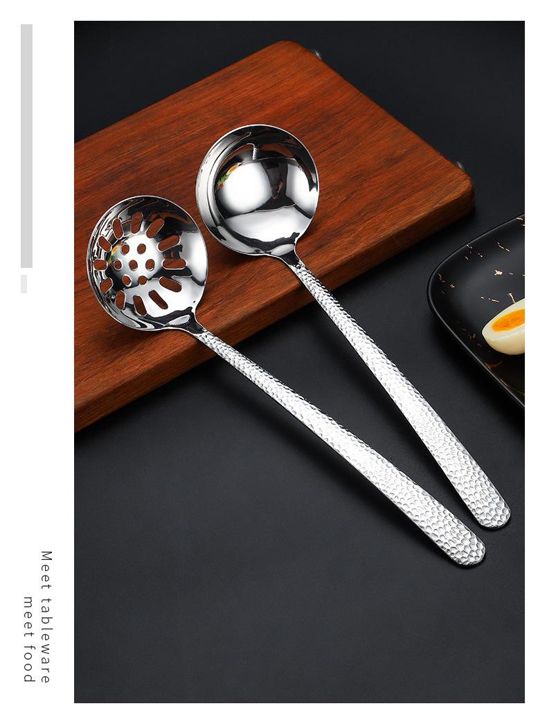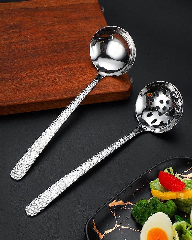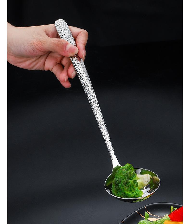 Cuchara de acero inoxidable 304 para olla caliente de hotel, con punta de martillo gruesa, para sopa, cuadrada, para colgar en restaurante