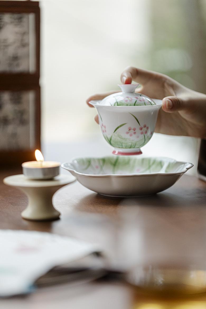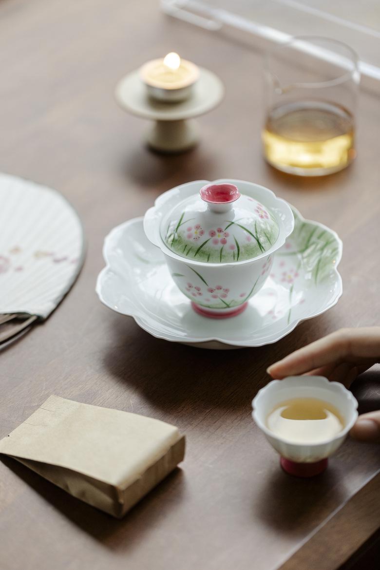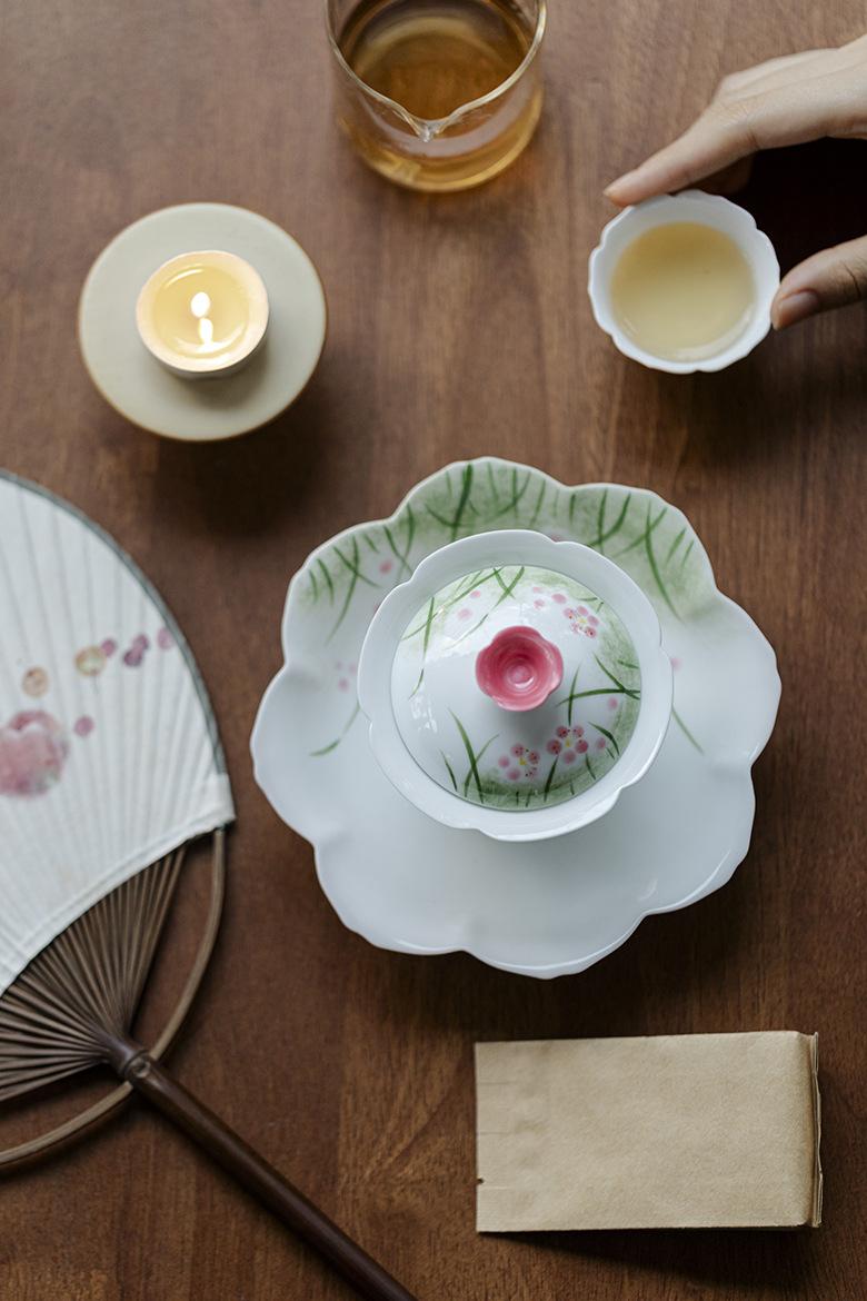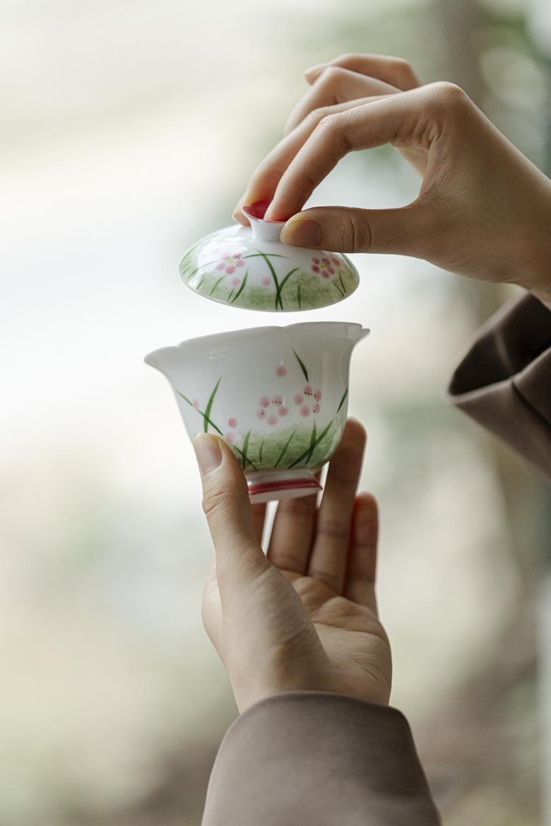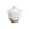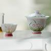Mi Yan cuenco de tapa de flores y plantas pintado a mano puro cuenco de cerámica hecho a mano boca de flor cuenco de té taza de té no caliente juego de té kung fu cuenco de porcelana blanca