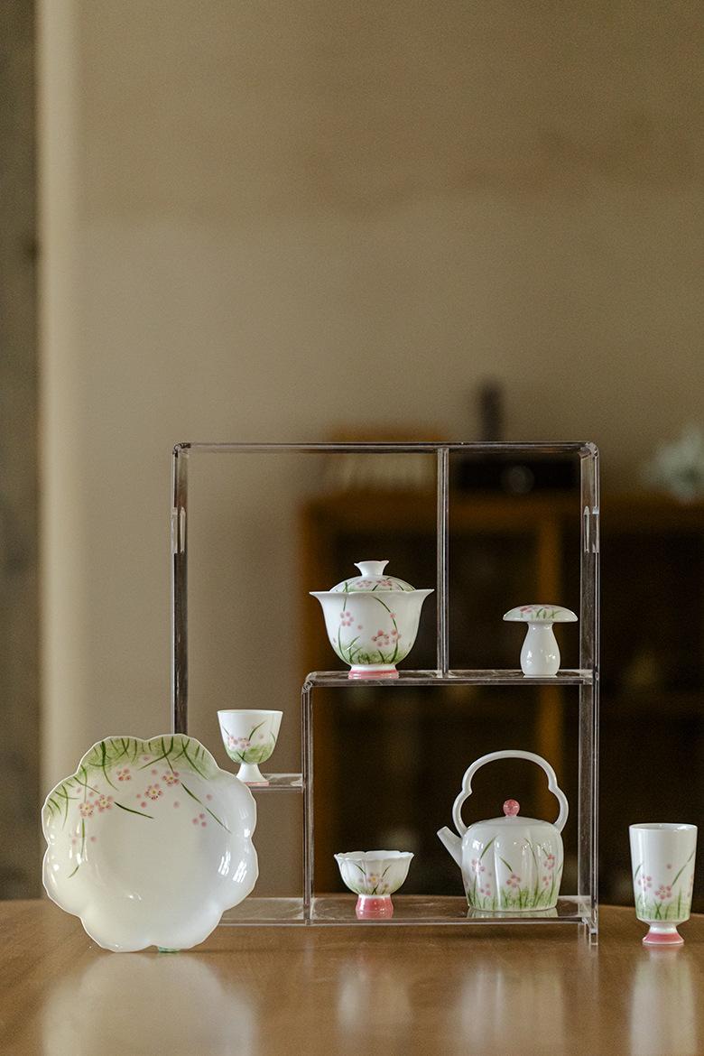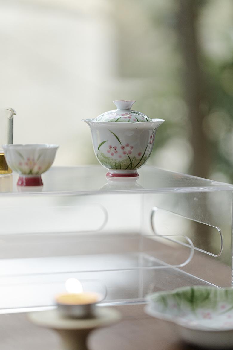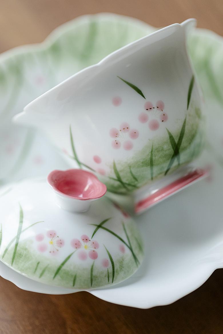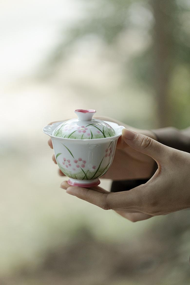 Jade clay - pink grass - nianlu flower mouth covered bowl