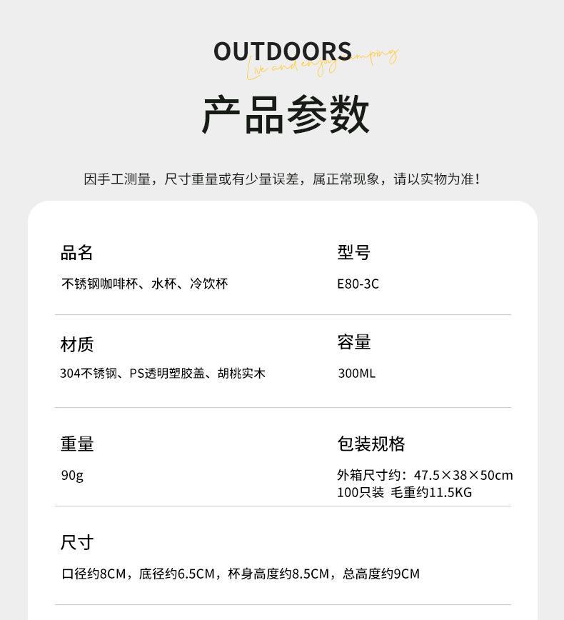 Taza de café y cerveza de nogal de una sola capa de acero inoxidable 304 transfronteriza de alto valor, taza de bebida fría portátil para exteriores, venta al por mayor