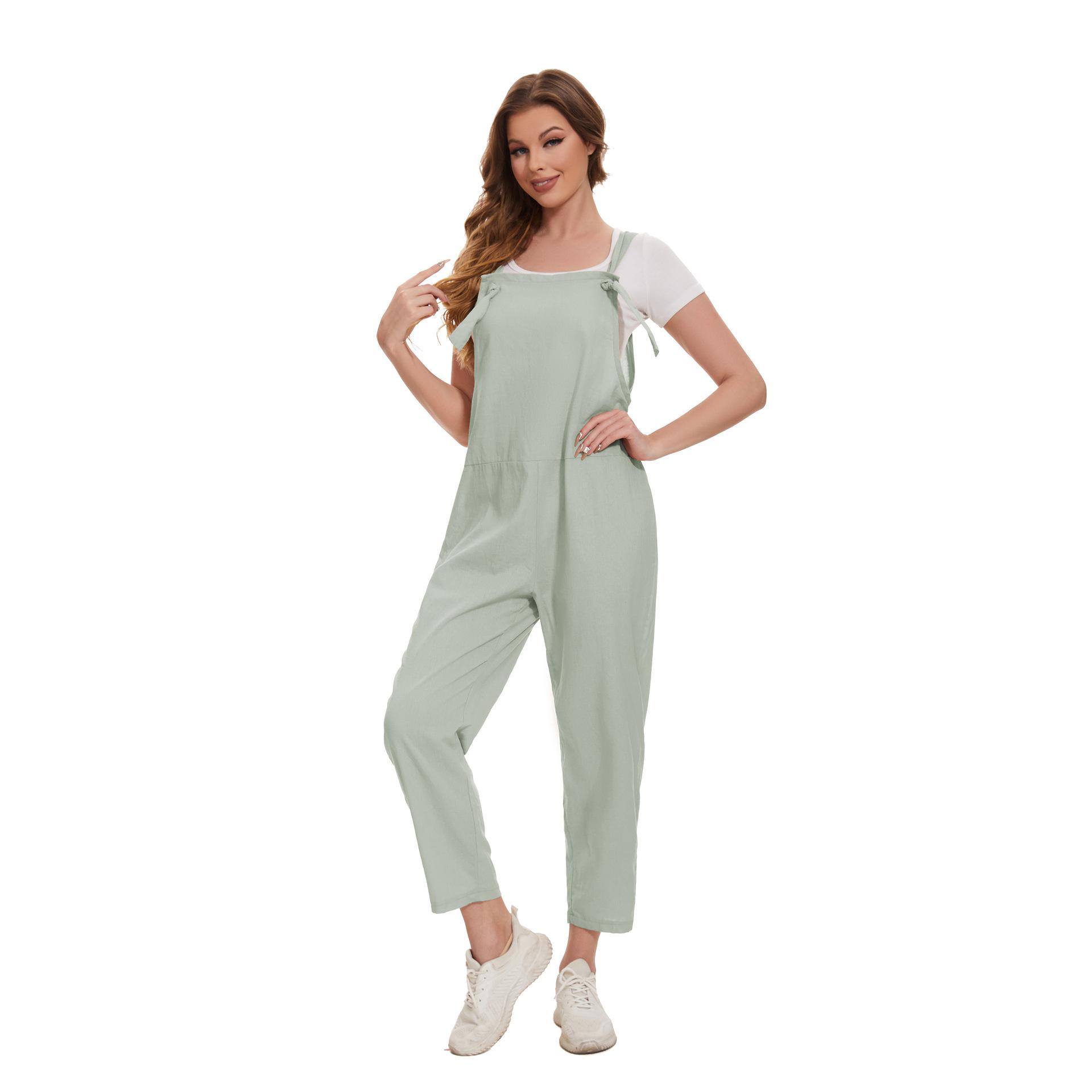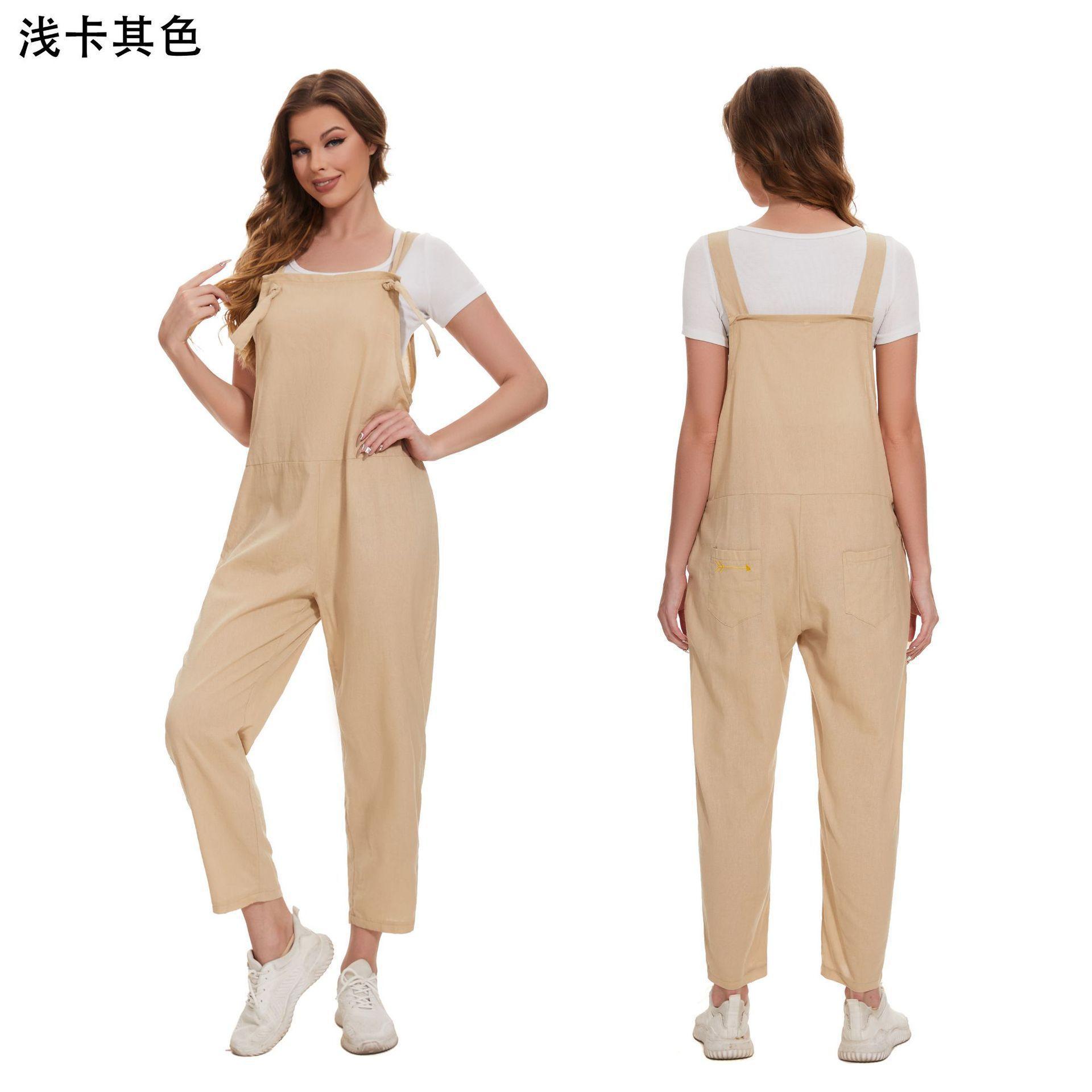 Amazon Transfronterizo Ropa de Mujer Europea y Americana 2024 Verano Nuevo Estilo Mono Estilo Étnico Moda Color Sólido Pantalones de Pierna Ancha