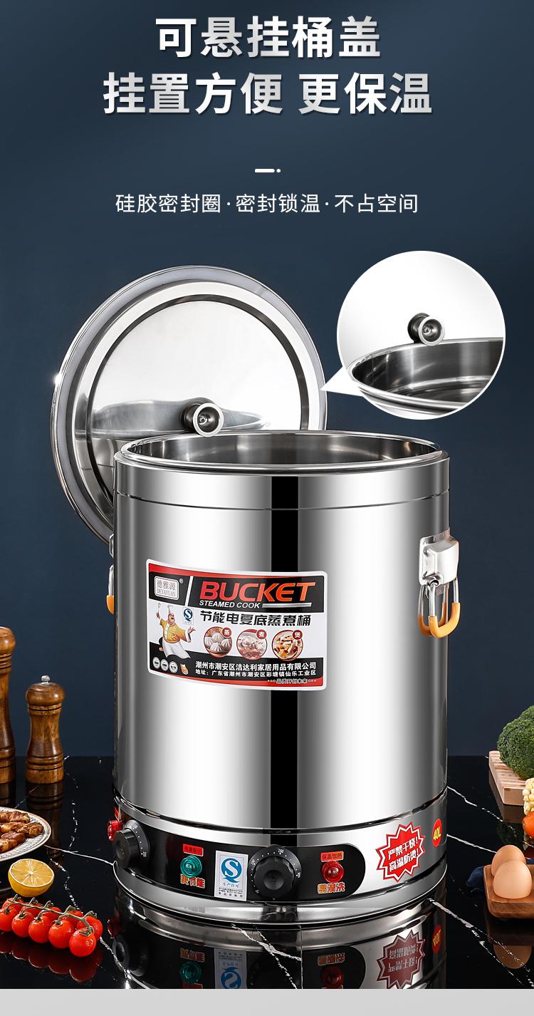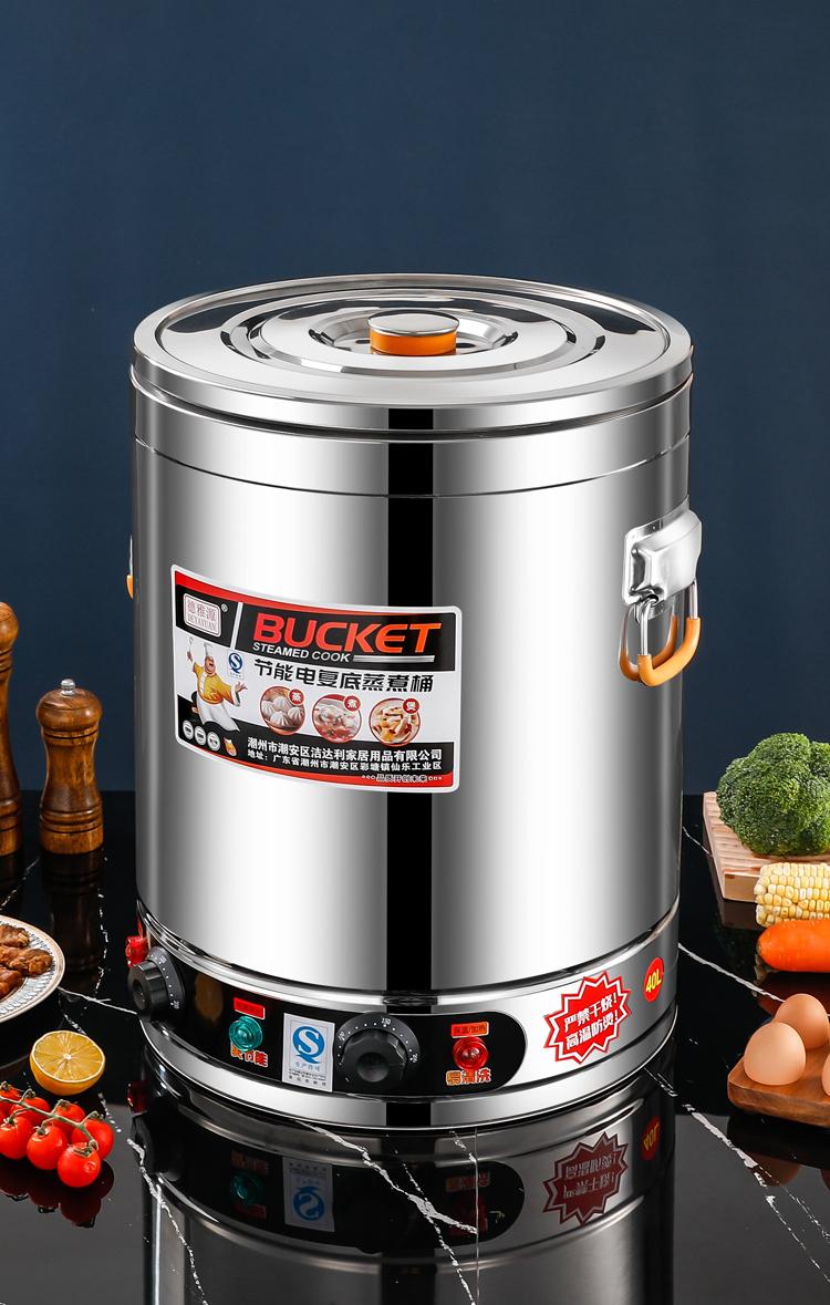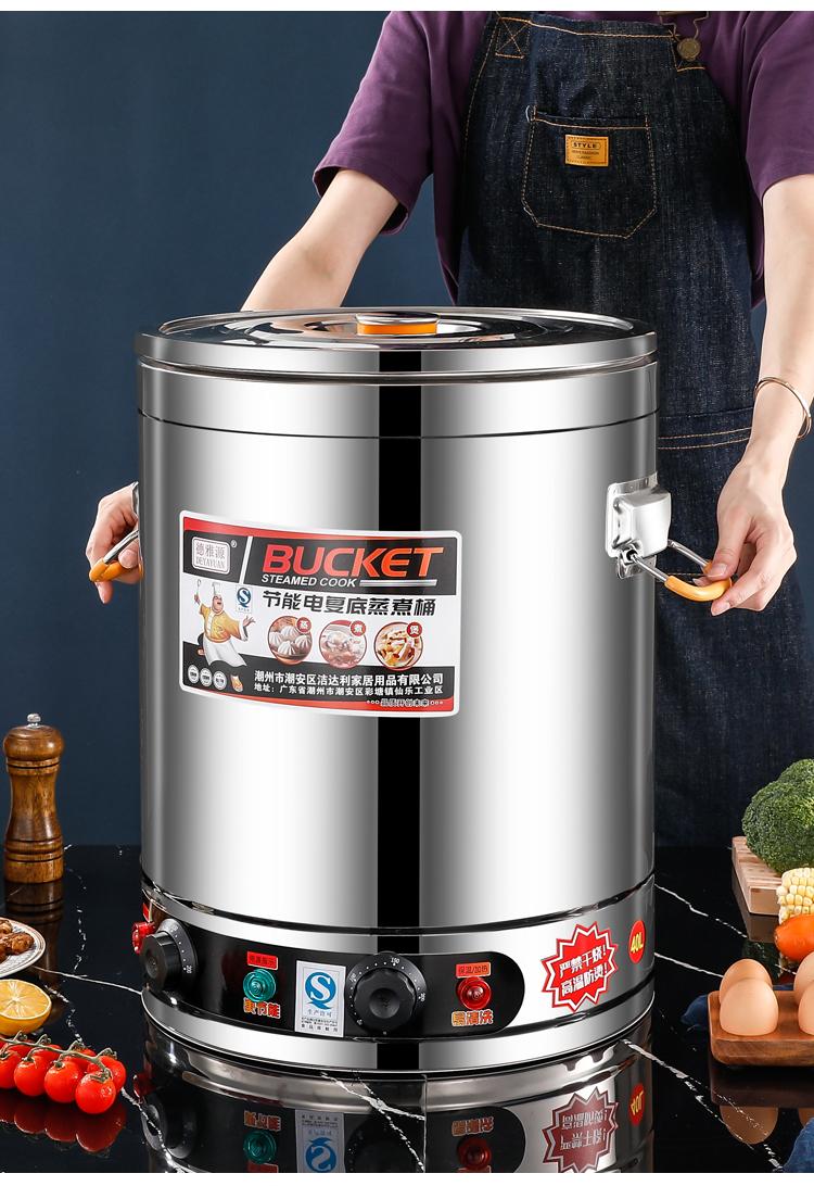Cubo de gachas de avena, cubo de sopa con calefacción eléctrica, cubo de aislamiento, cubo de gachas de avena comercial de gran capacidad, cubo de agua hirviendo para sopa de salmuera, cubo de vapor integrado con aislamiento