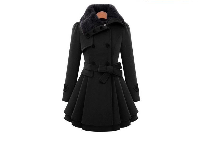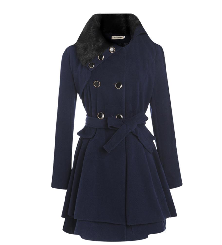 Nuevo Abrigo de Lana Delgado de Largo Medio Estilo Europeo y Americano Abrigo Grueso de Doble Botonadura + Cinturón