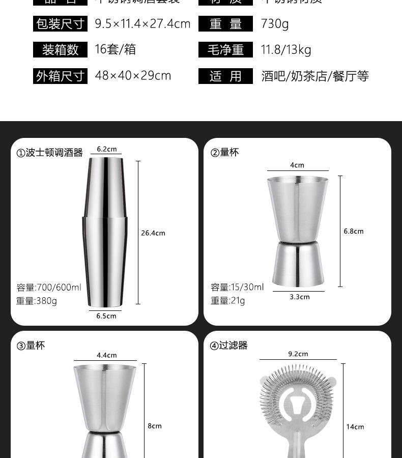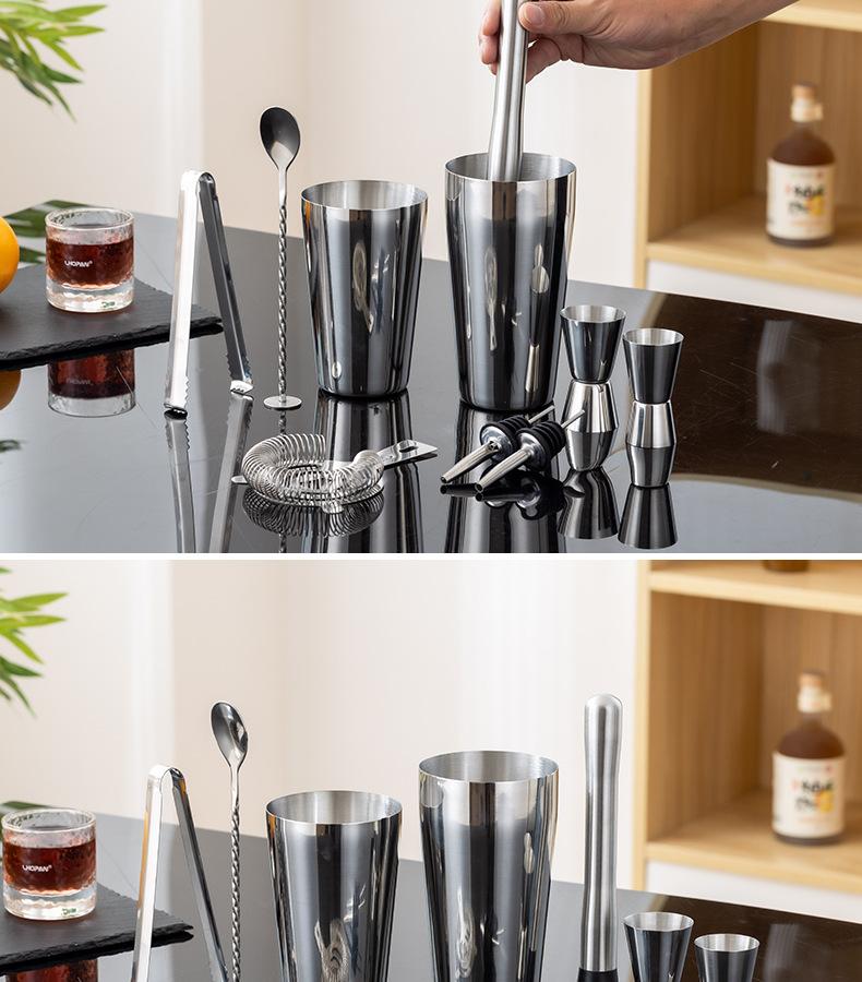 Set de Coctelera Acero Inoxidable Vaso Coctelera Boston Herramientas de Mezcla Bar Set de Mezcla de Cócteles Herramientas