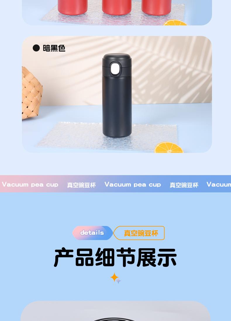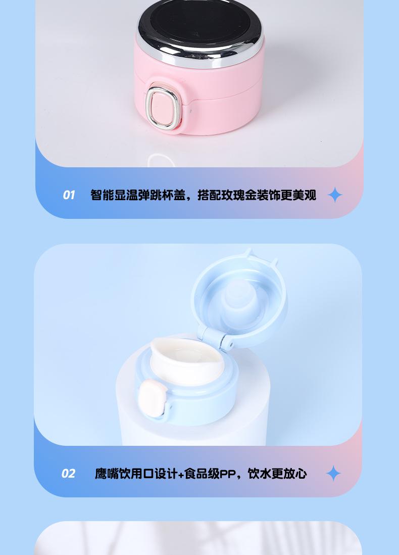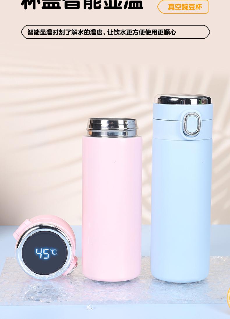 Termo de guisante simple con tapa de rebote de acero inoxidable para hombres y mujeres estudiantes, taza de agua de alto valor de color, taza de temperatura con pantalla inteligente