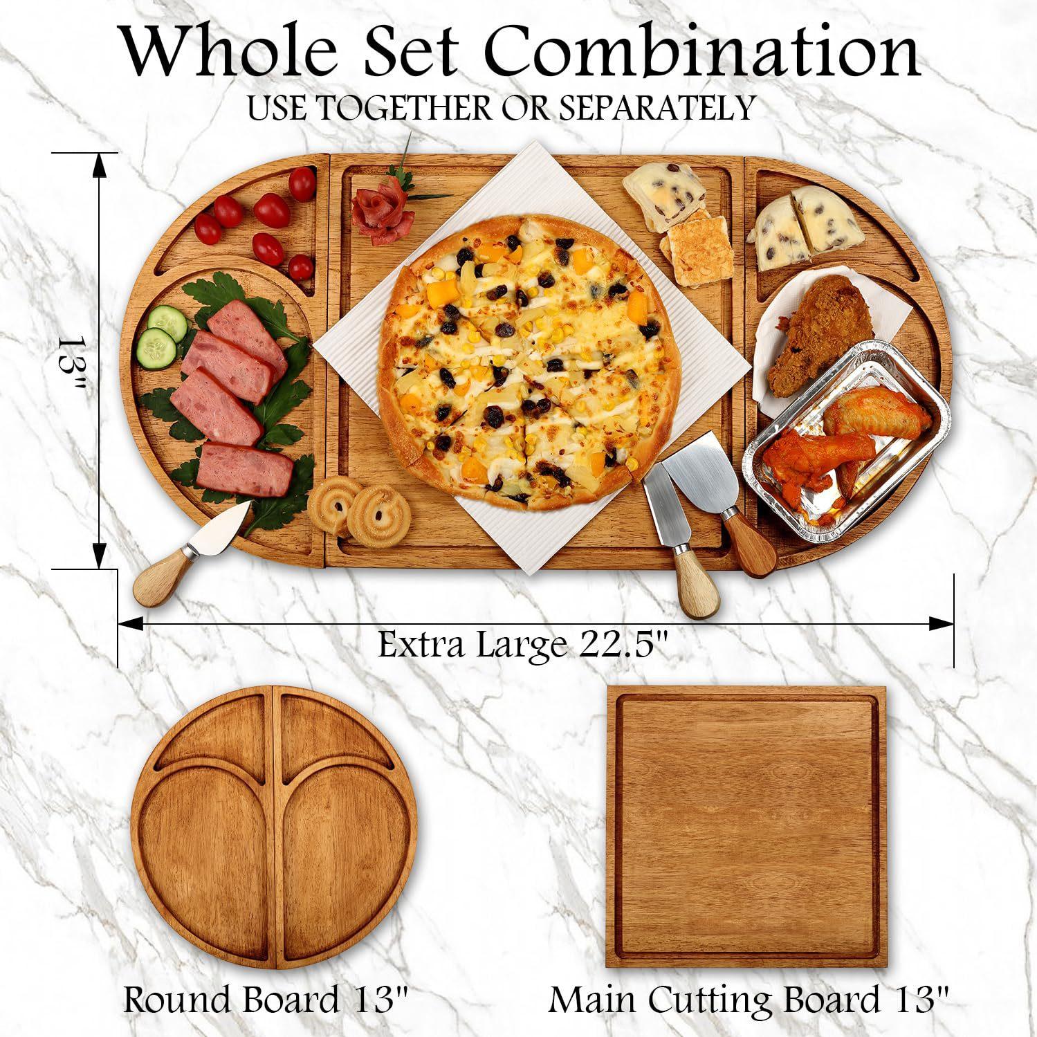 Tabla de cortar de madera creativa con costuras, tabla de cortar de queso cuadrada y redonda, plato de pan de frutas, tabla de cortar de madera de acacia