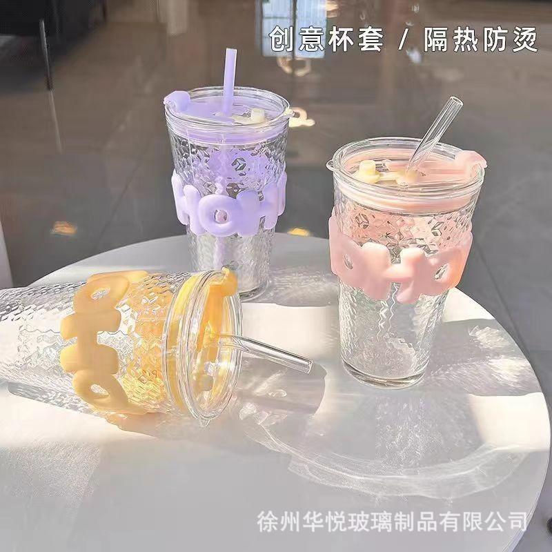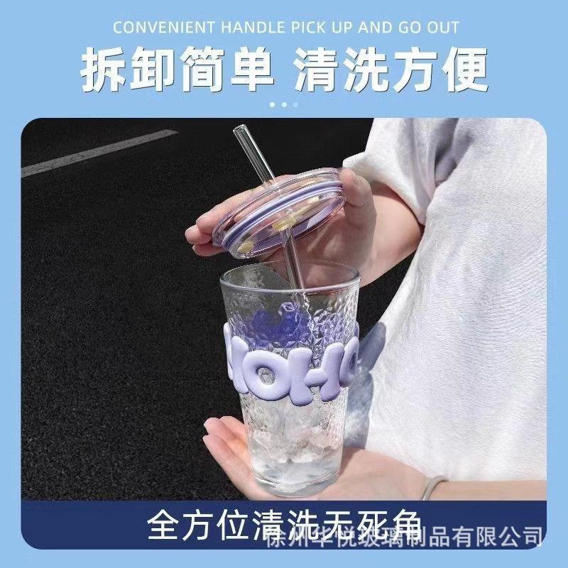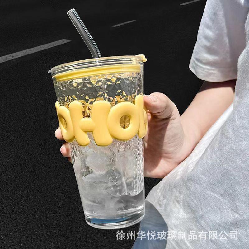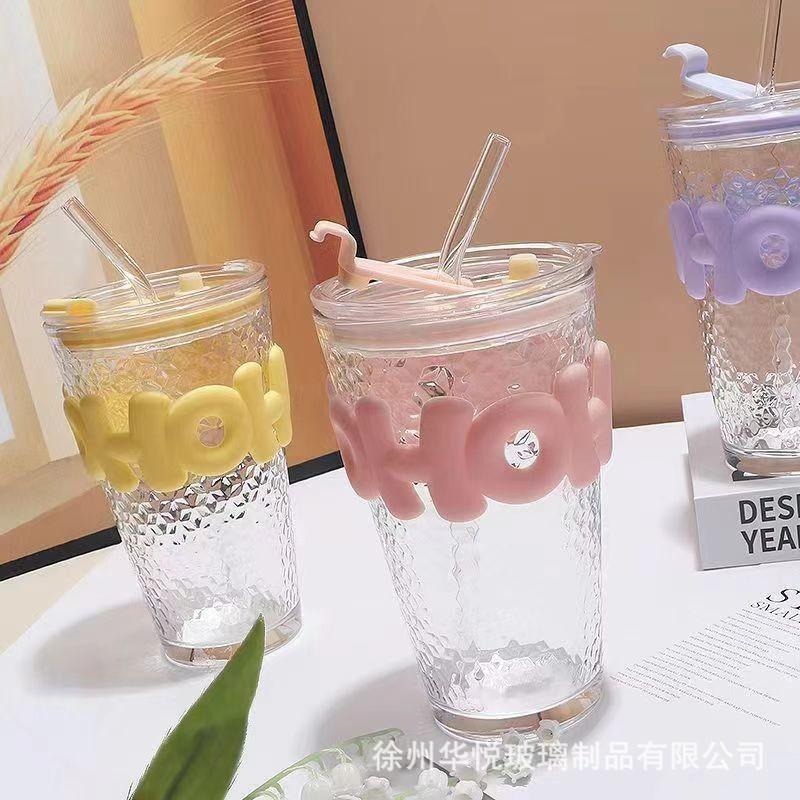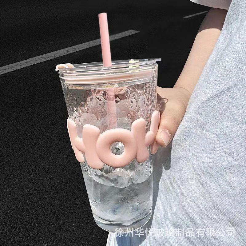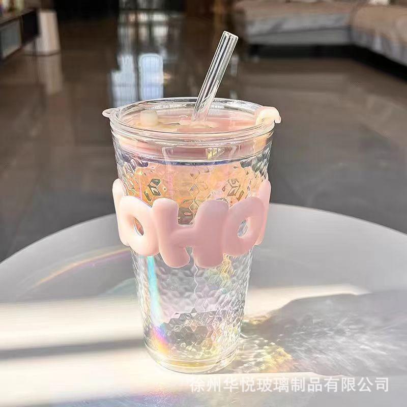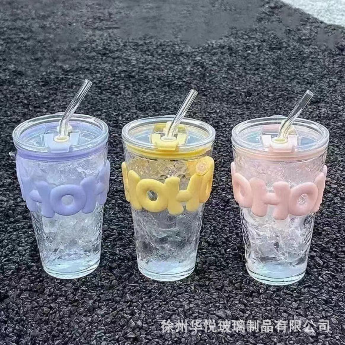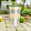 Taza de verano caliente de alto valor de color de vidrio triturado con hielo Ins taza de agua creativa taza de bebida fría de café de gran capacidad con pajita
