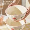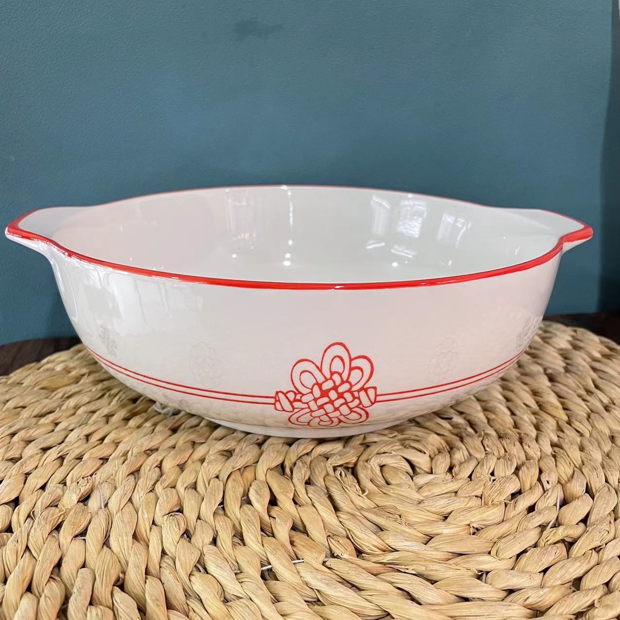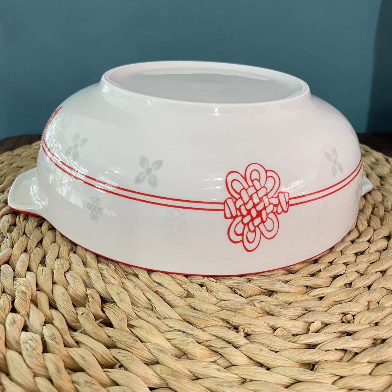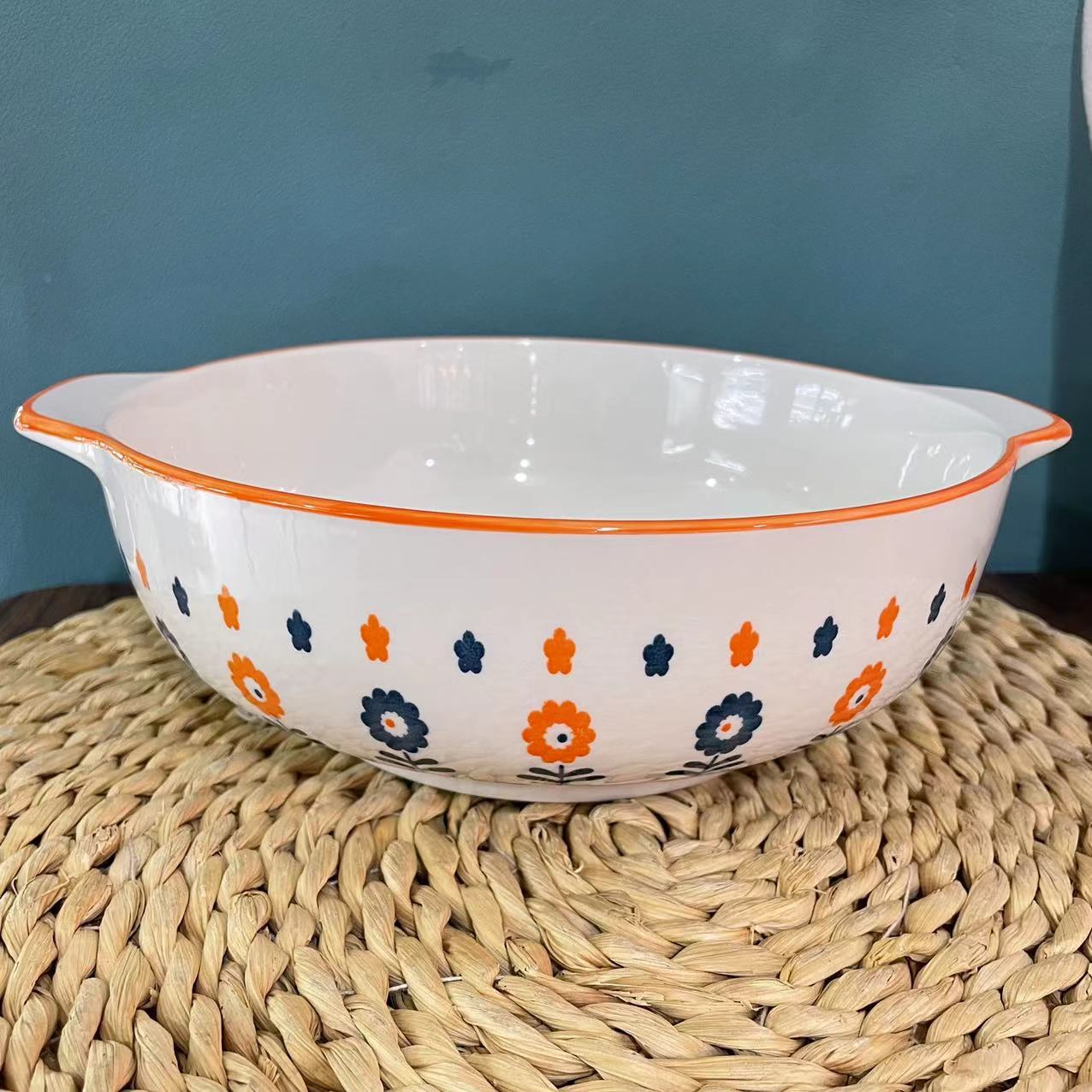Tazón de sopa de cerámica binaural de 10,25 pulgadas, tazón grande para el hogar con impresión bajo esmaltado, tazón de sopa de cerámica para microondas
