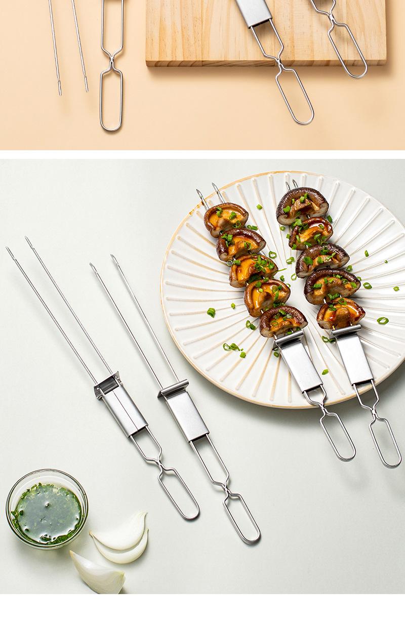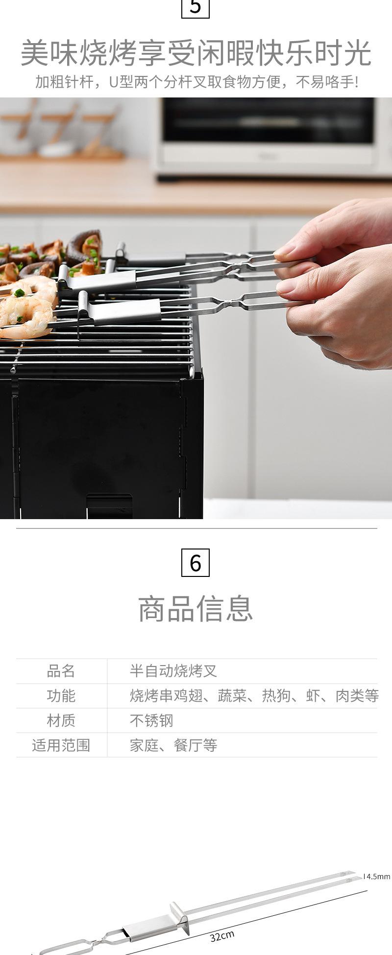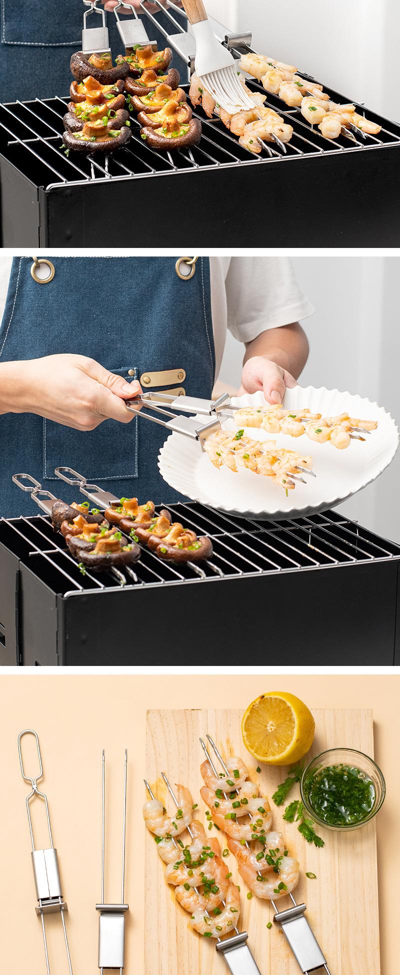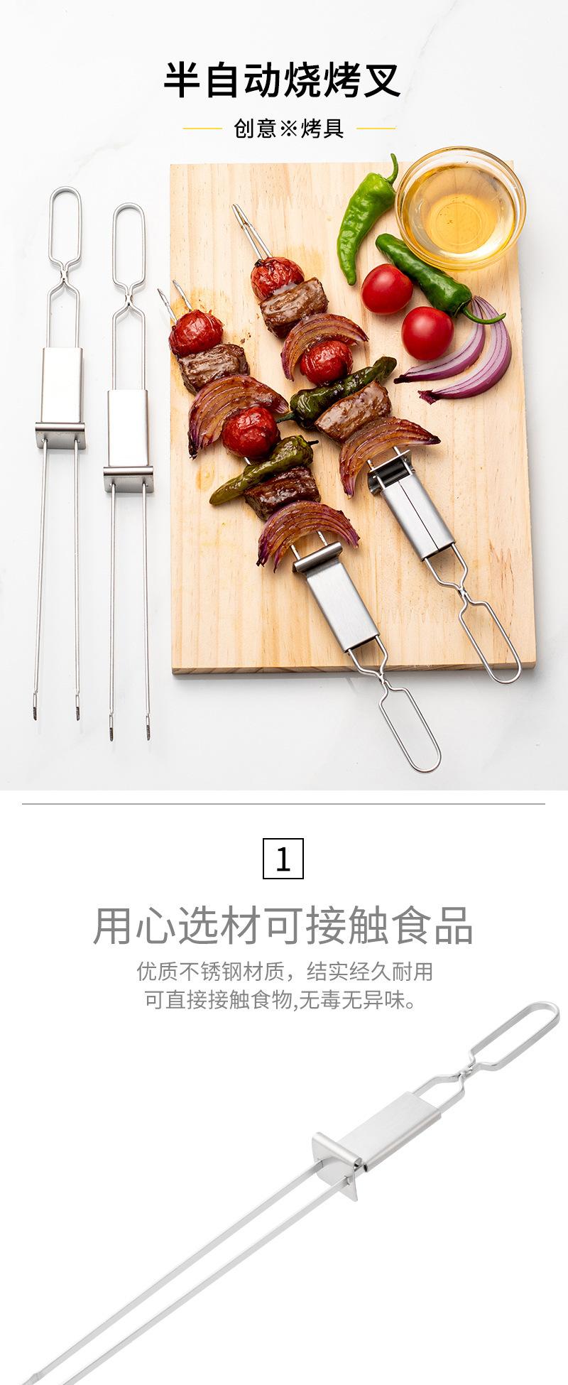 Tenedor de barbacoa de doble cabezal semiautomático de acero inoxidable 430 transfronterizo, tenedor de barbacoa, herramienta de barbacoa para exteriores, letrero de barbacoa portátil