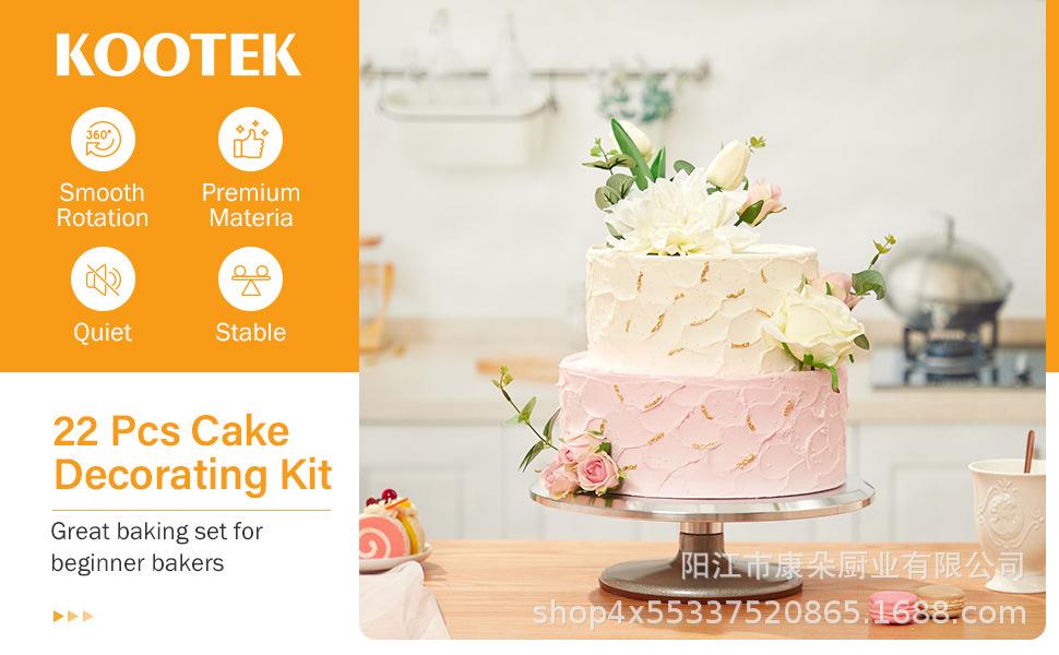 Juego de 22 piezas para tartas, juego de plato giratorio de aleación de aluminio, boquilla para manga pastelera, herramientas para decoración de tartas, juego para hornear