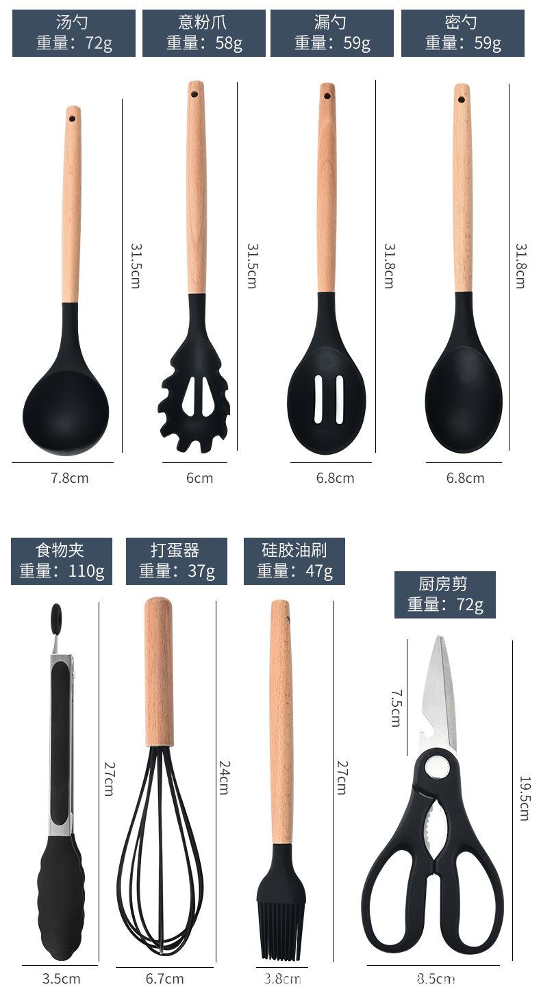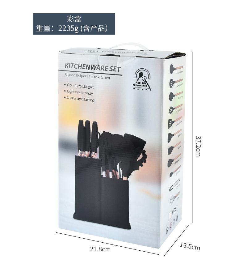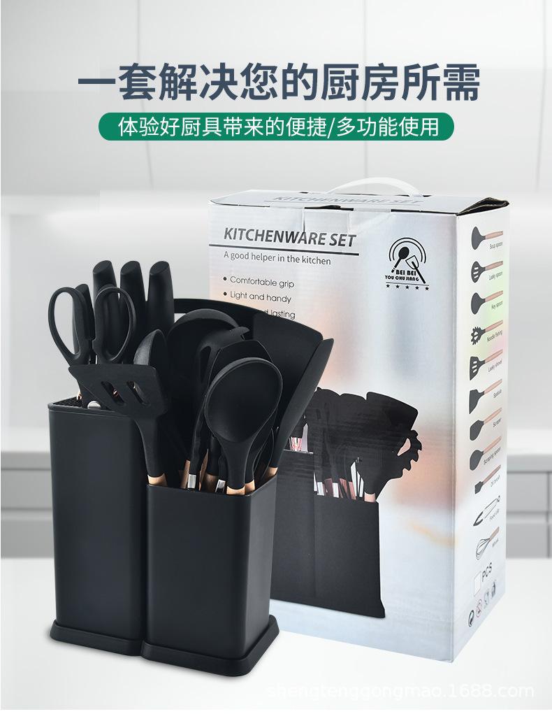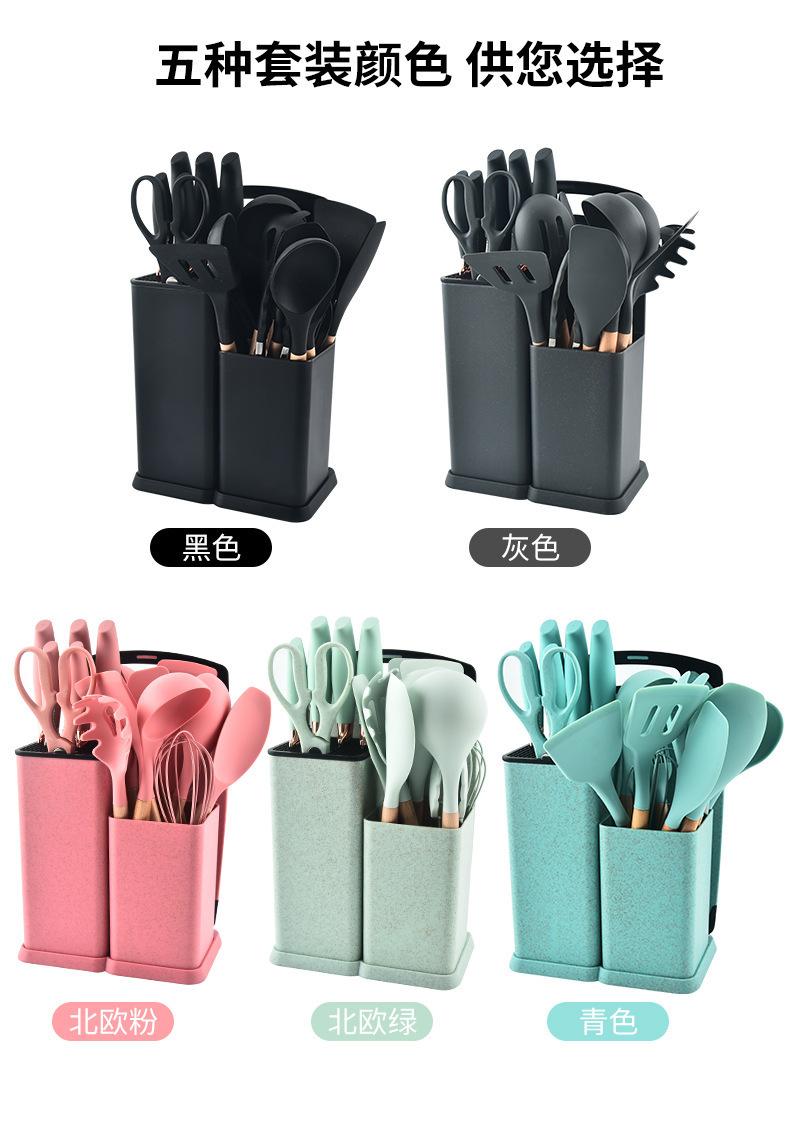 Juego de utensilios de cocina de silicona de 19 piezas al por mayor transfronterizo, herramientas de cocina, juego de cuchillos de cocina, espátula de silicona, cuchara, tabla de cortar