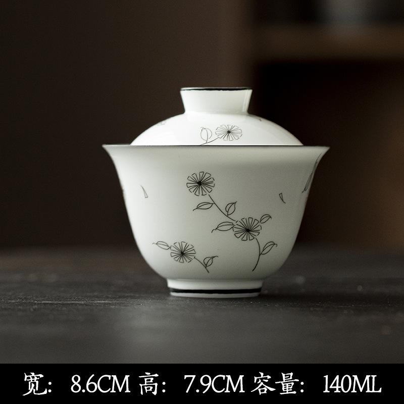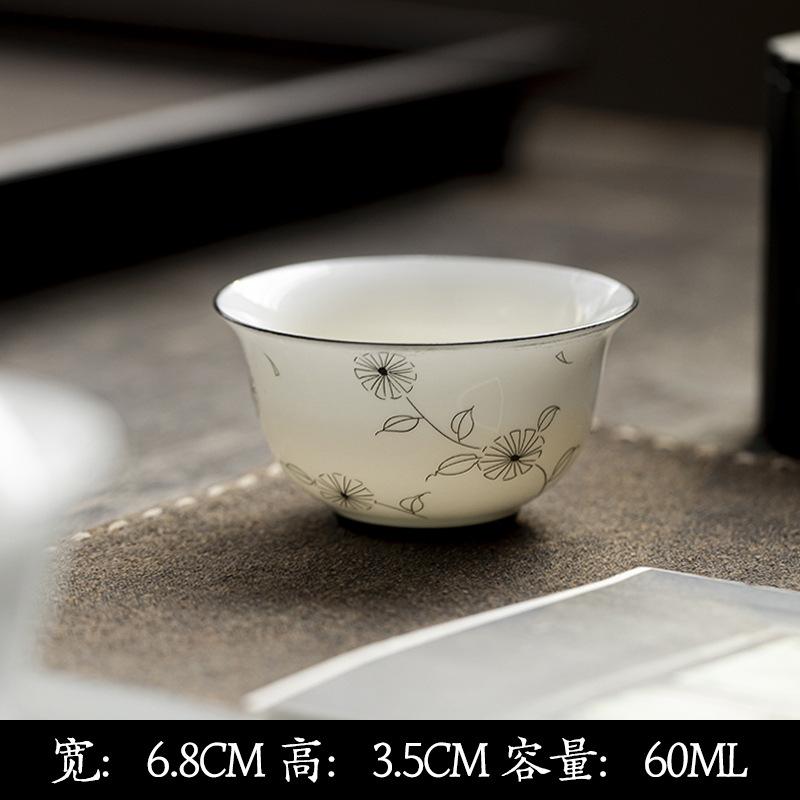 Moji Jade Mud Sketch Juego de Té Kung Fu Pintado a Mano Cerámica Tazón con Tapa Tetera Taza de Té Olla Soporte Accesorios de Ceremonia del Té Colección