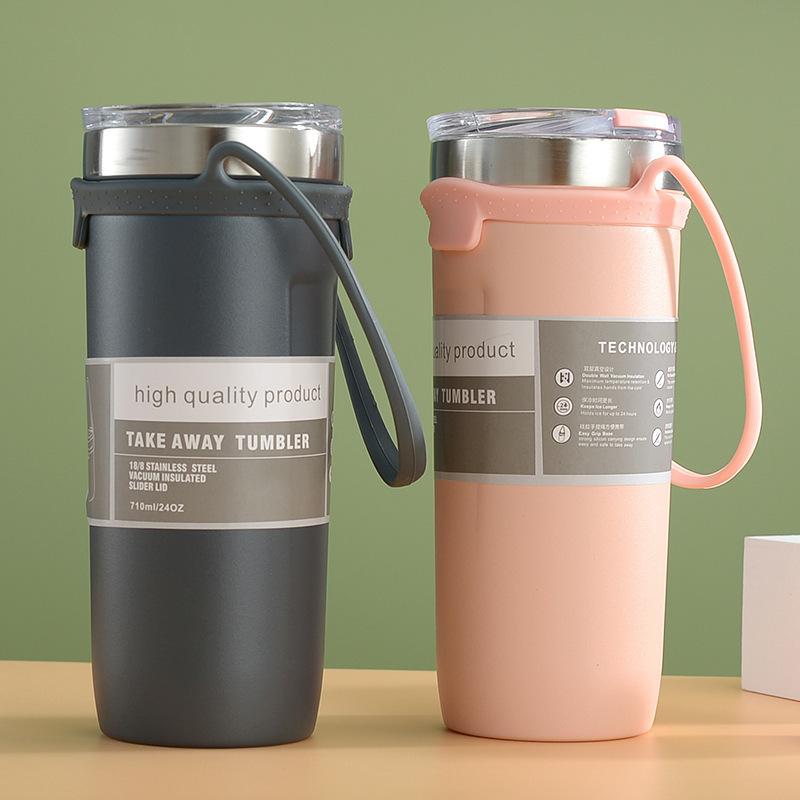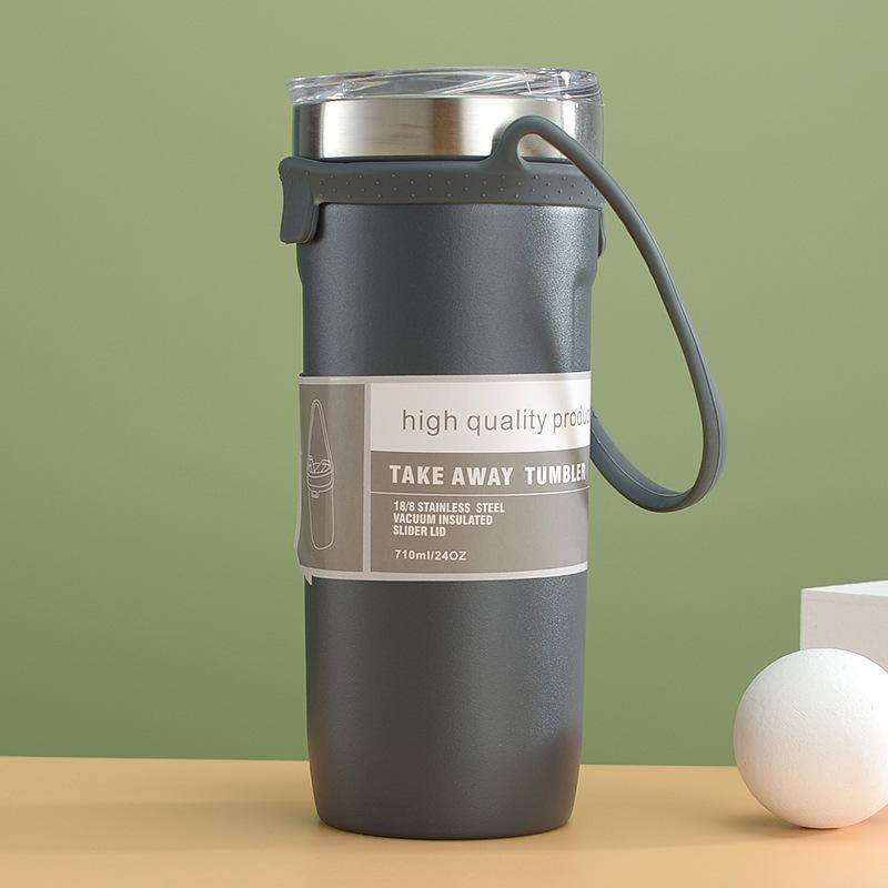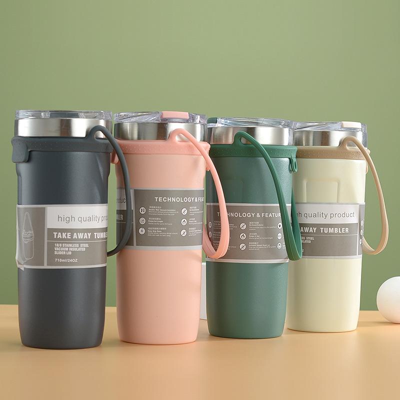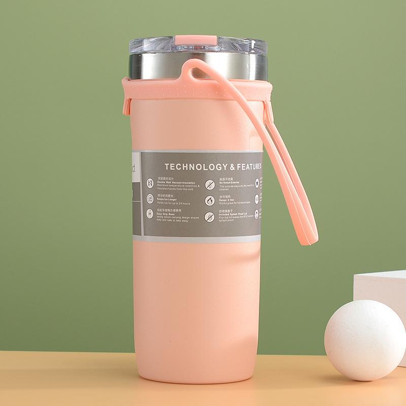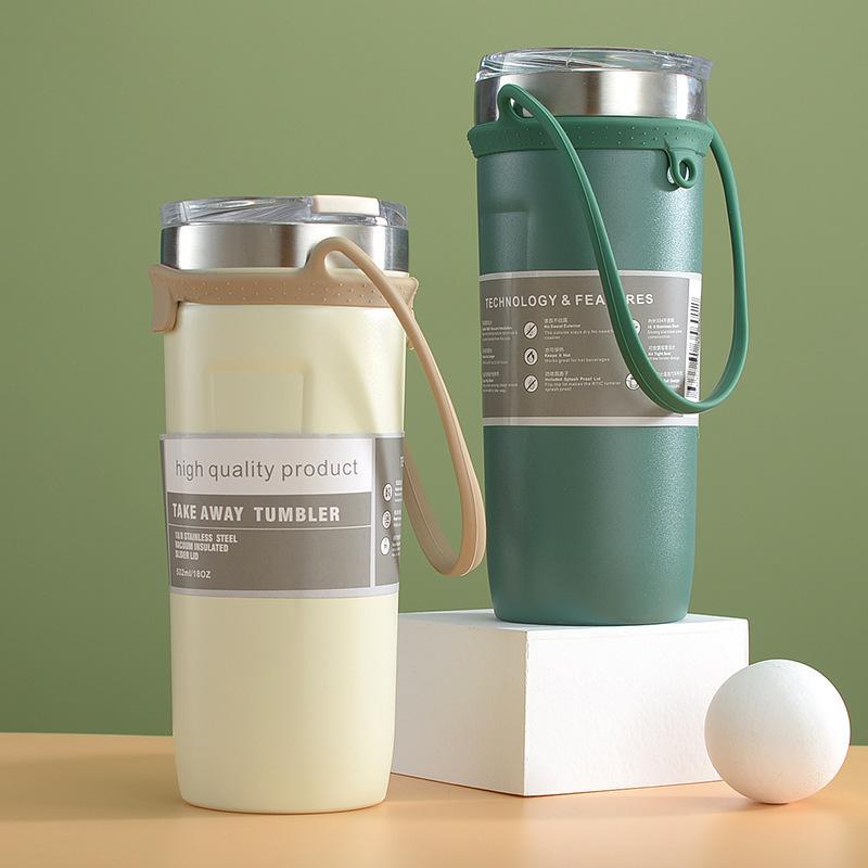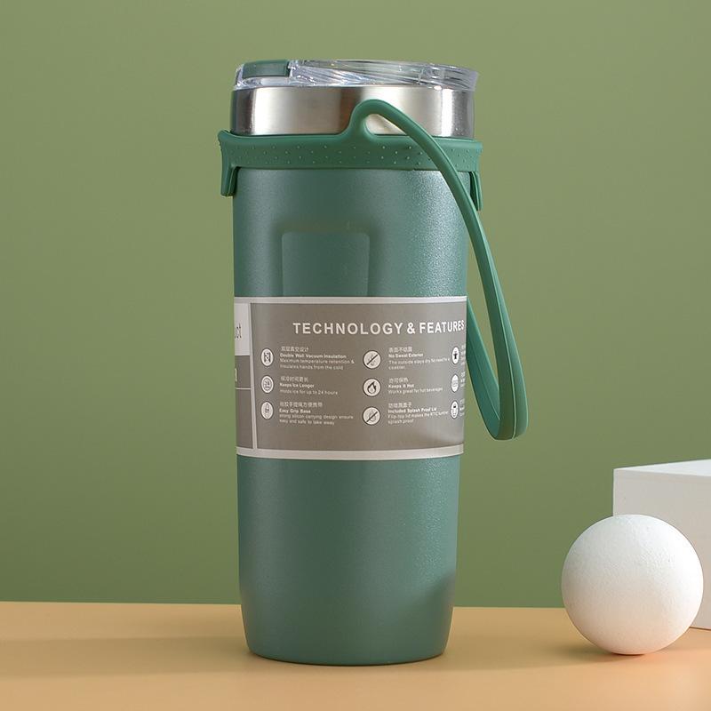 Taza de café transfronteriza, termo de doble capa, taza de hielo de gran capacidad, taza de acero inoxidable para automóvil, taza portátil con cuerda