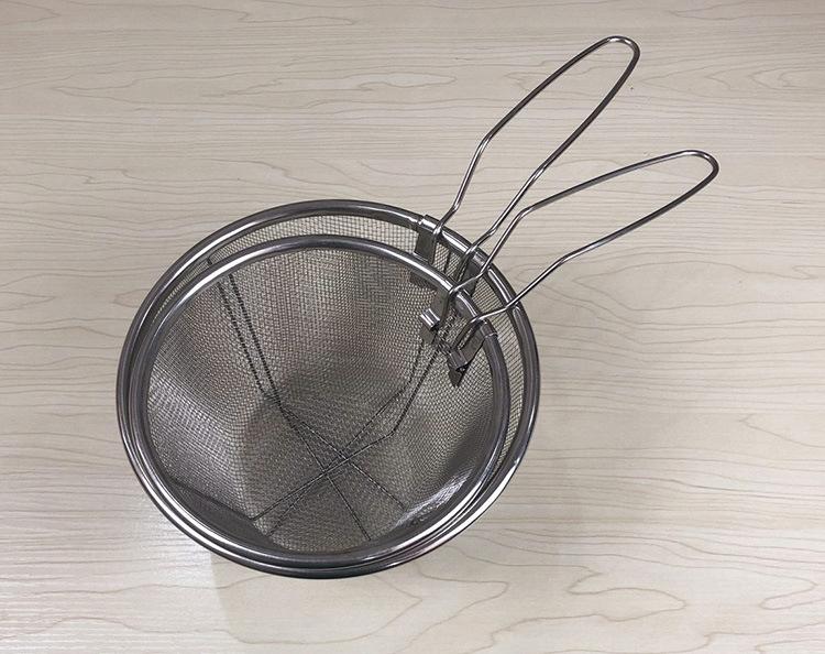 Colador de acero inoxidable grueso para el hogar, colador de fideos, dumplings, malla filtrante, tamiz grande de malla frita para cocina
