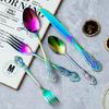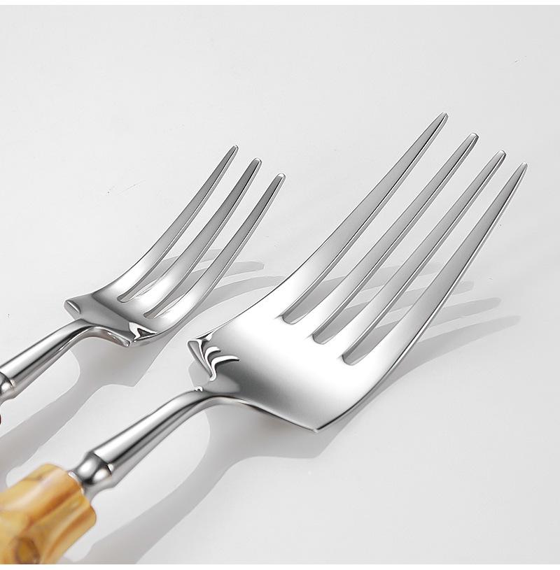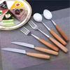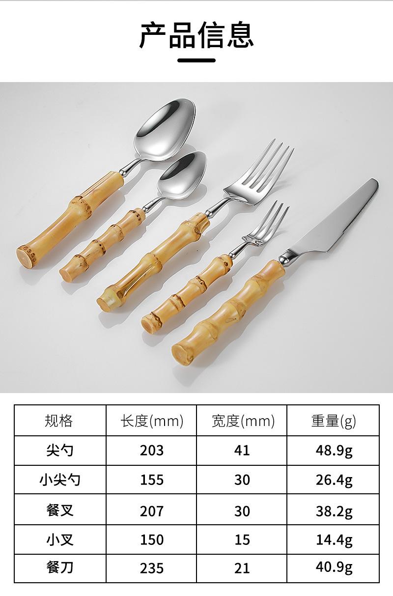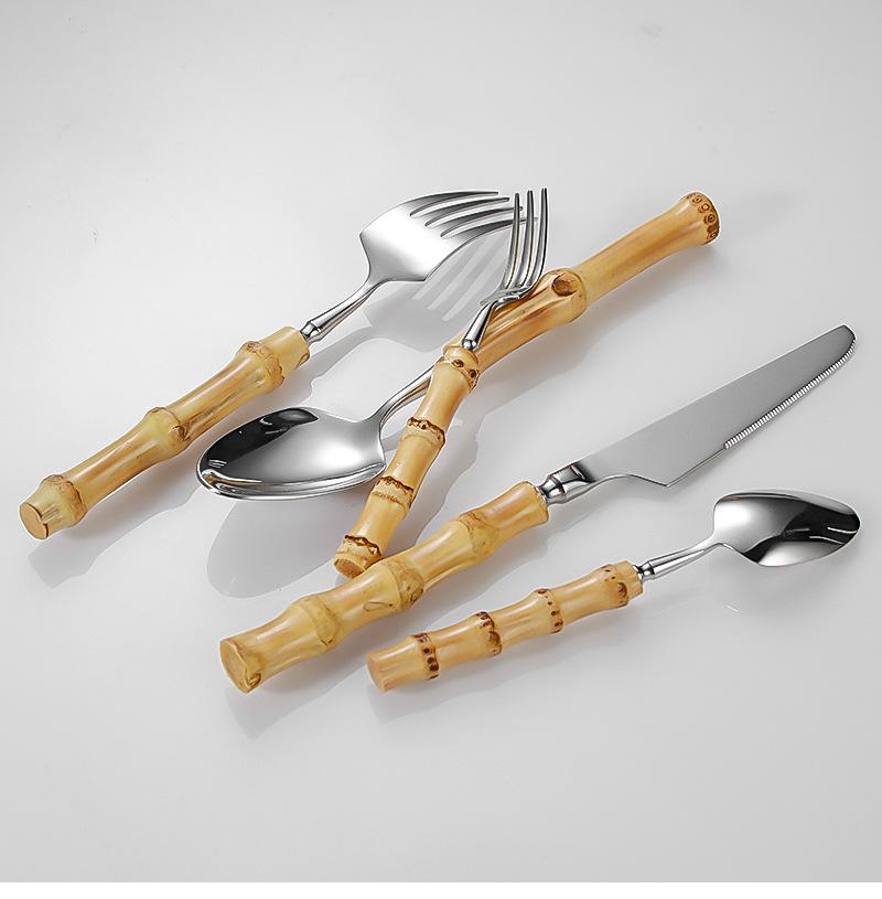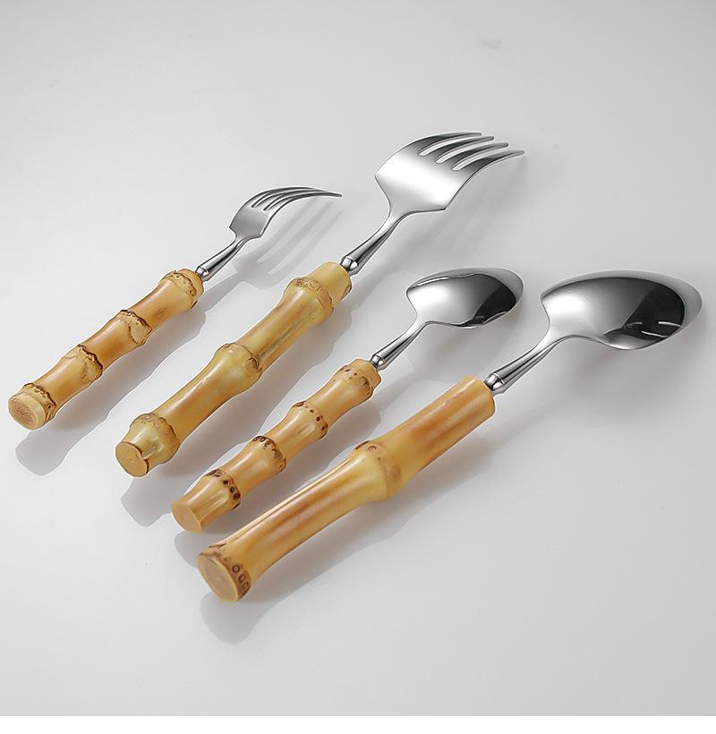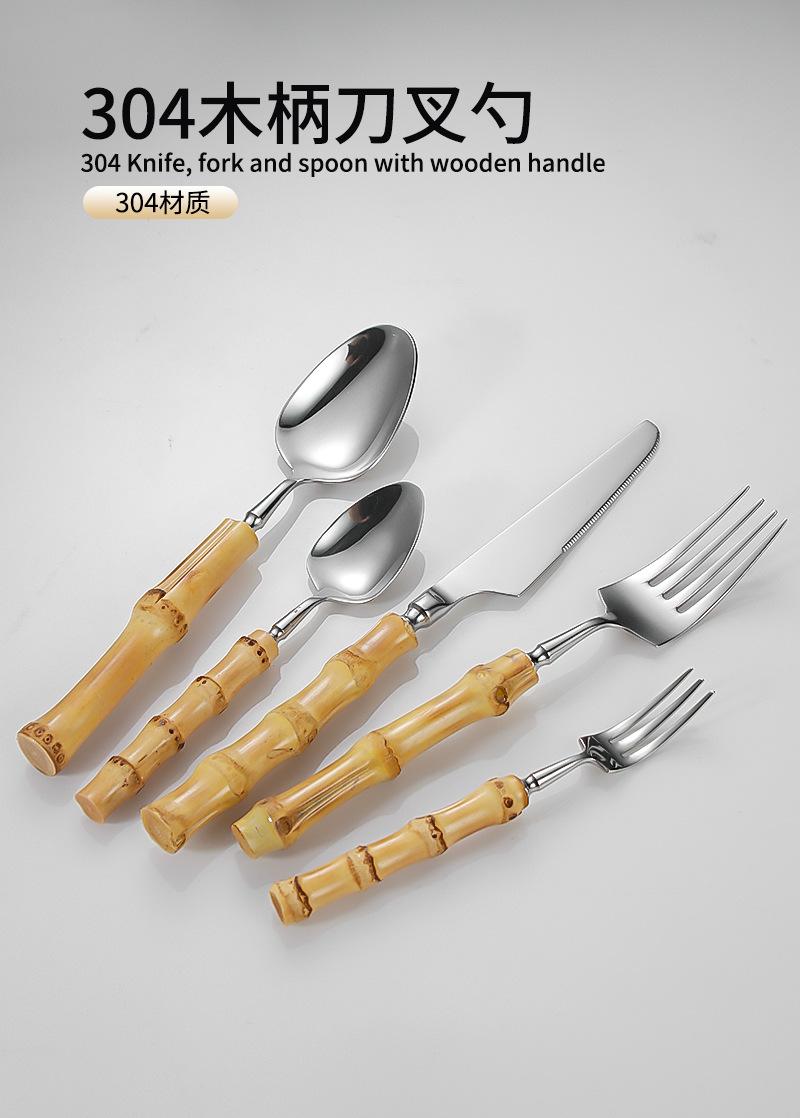 Cuchillo y tenedor para carne occidental creativo de acero inoxidable 304 con mango de bambú macizo, cuchara, vajilla, cuchara de postre, regalo, cuchara y tenedor