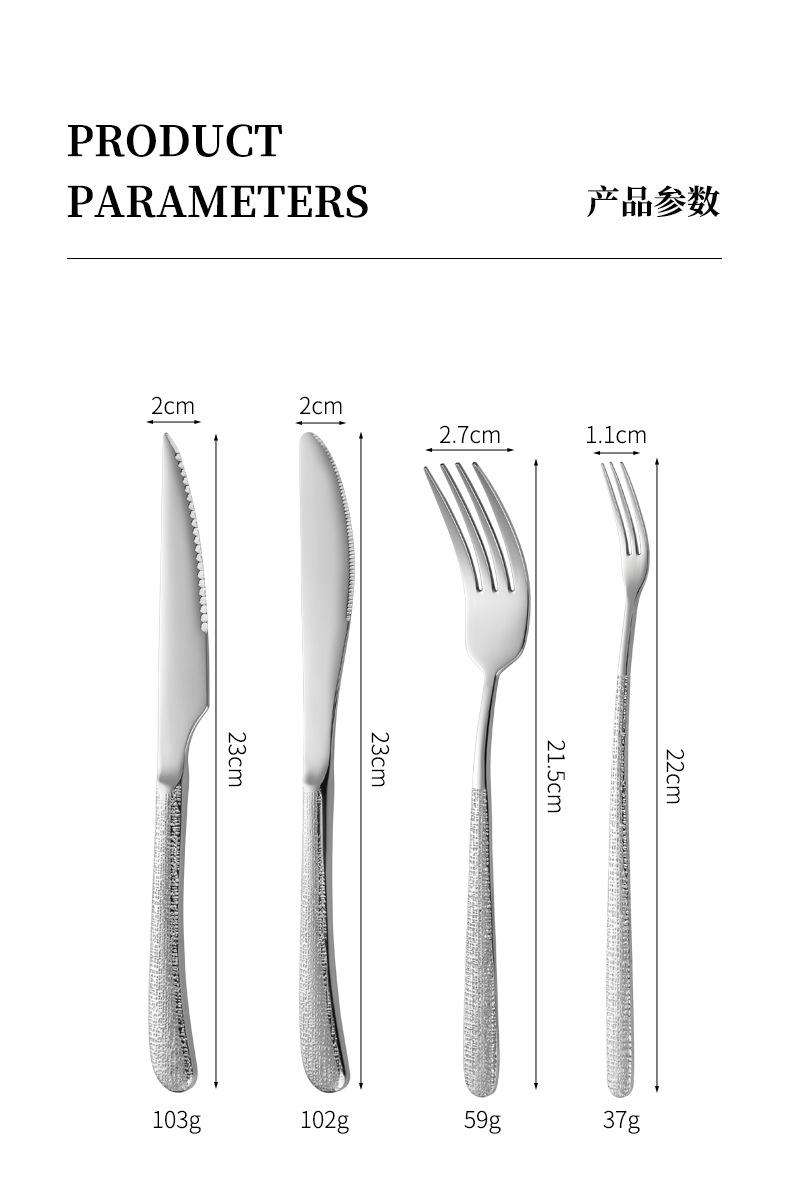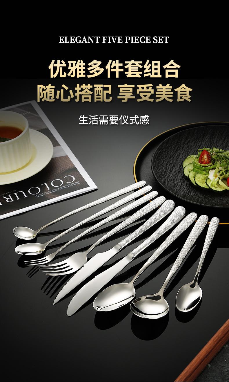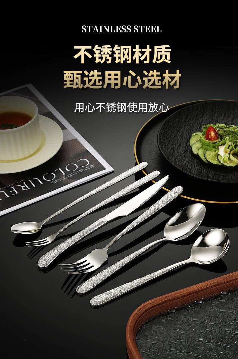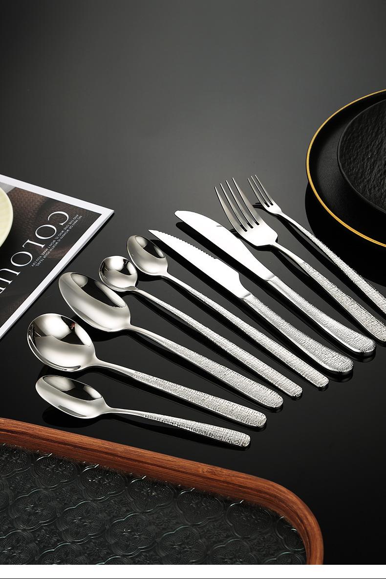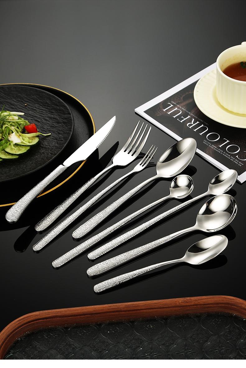 Fabricantes de vajilla elegante de acero inoxidable 304 de alta calidad martillo cuchillo para bistec tenedor cuchara hotel occidental cuchara de postre tenedor para fruta