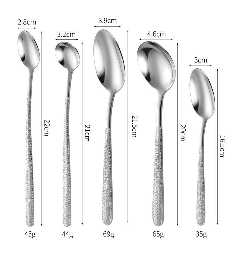 Tea spoon (304 steel), Tea fork (304 steel), Table spoon (304 steel), Fork (304 steel), Round table spoon (304...