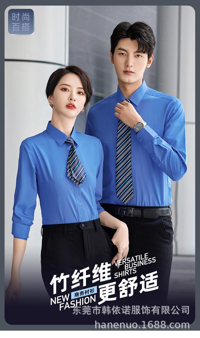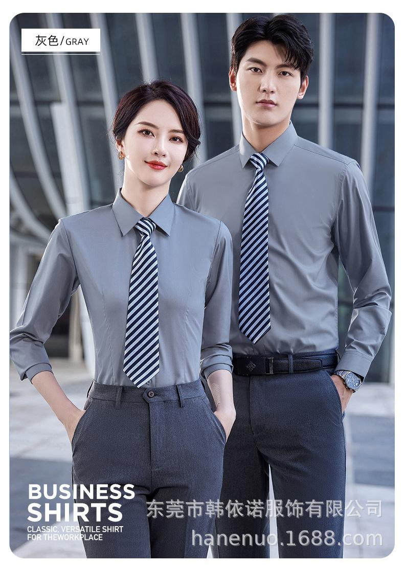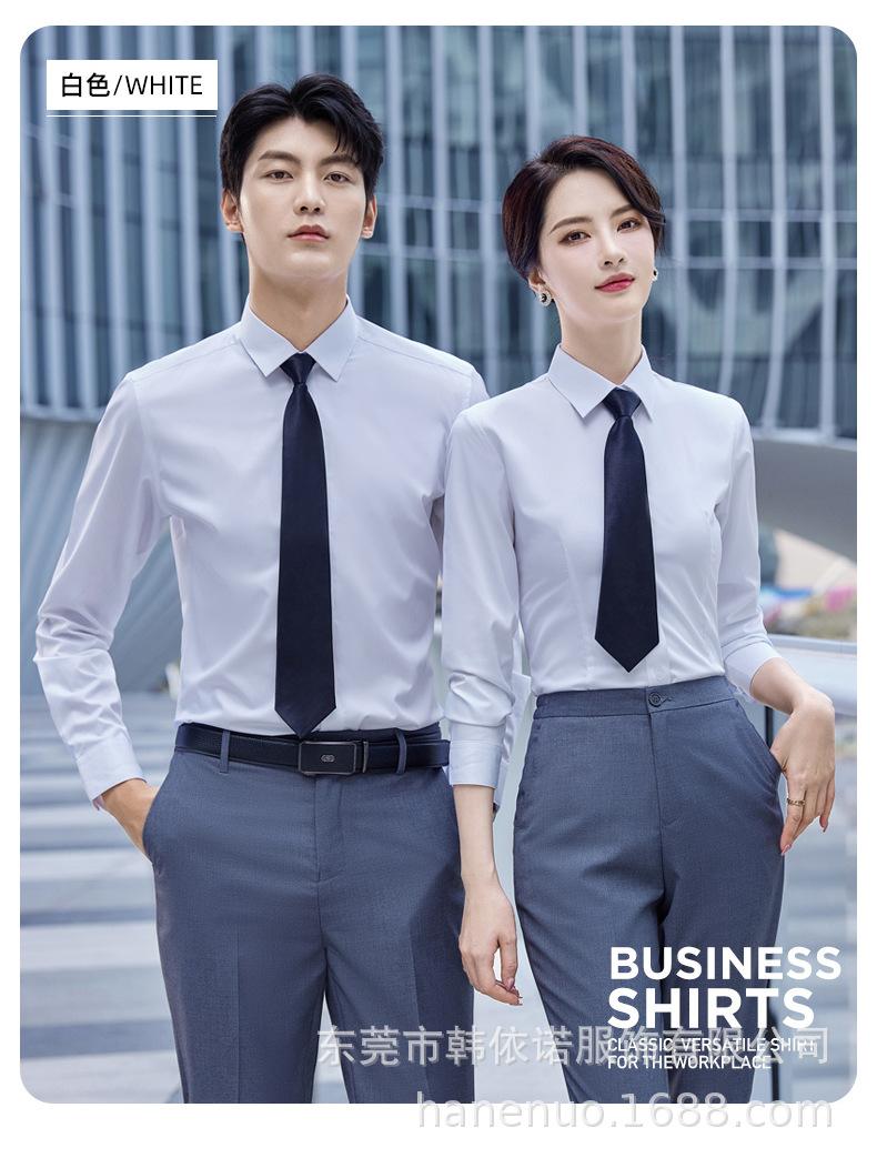 Camisa blanca de manga larga para hombre y mujer de fibra de bambú sin planchado con camisa slim fit azul gris ropa de trabajo LOGO bordado