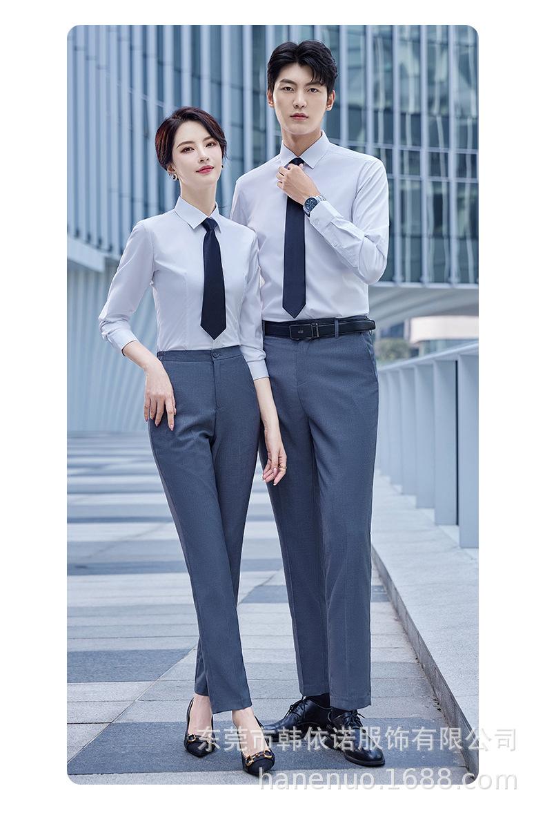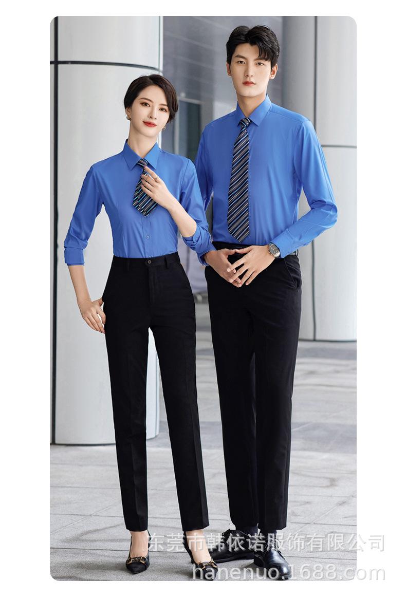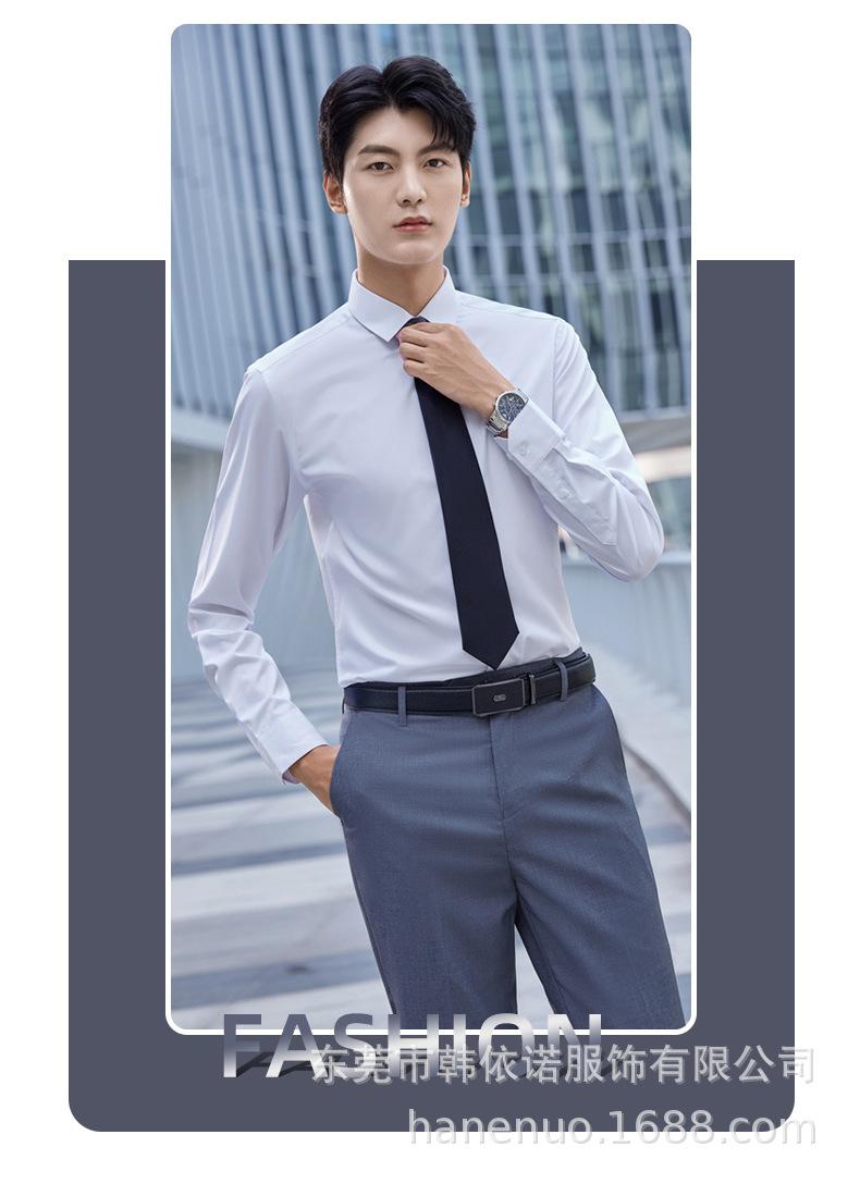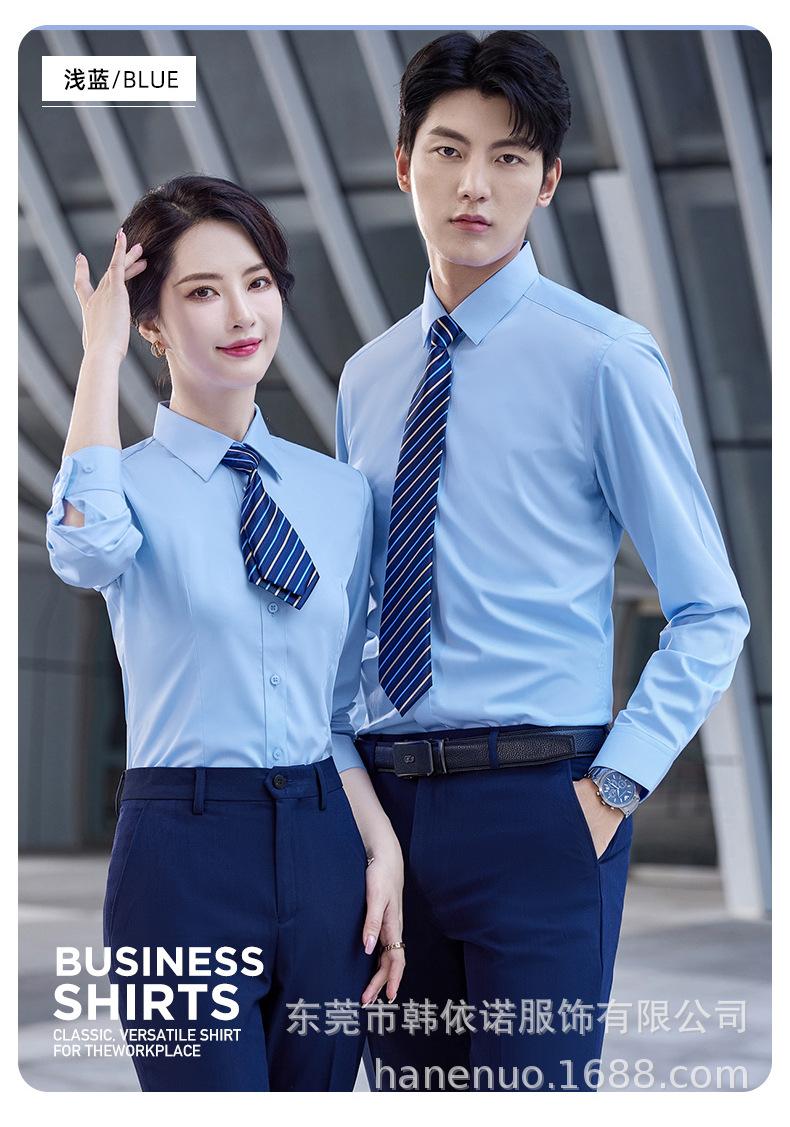Camisa blanca de manga larga para hombre y mujer de fibra de bambú sin planchado con camisa slim fit azul gris ropa de trabajo LOGO bordado