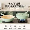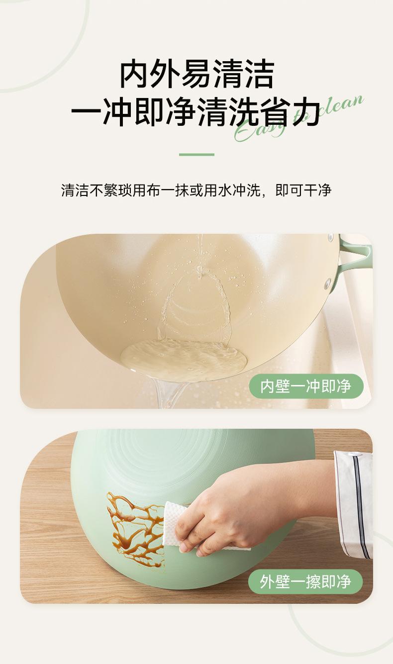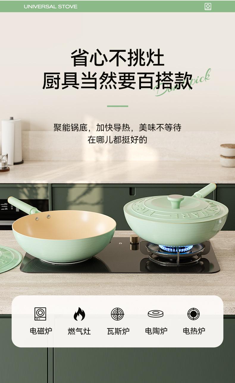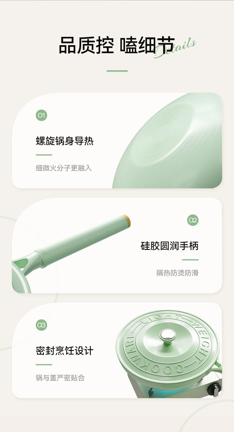 28cm mint green titanium shield wok "0 fluorine coating" + flat wave iron cover
