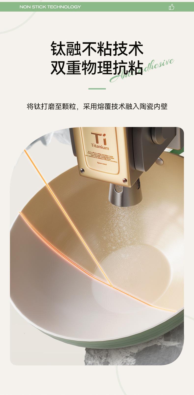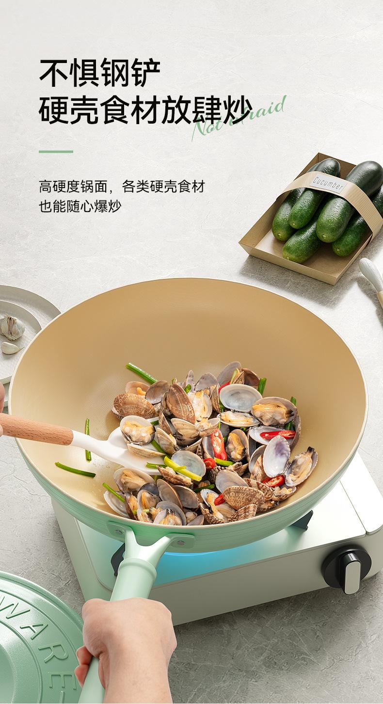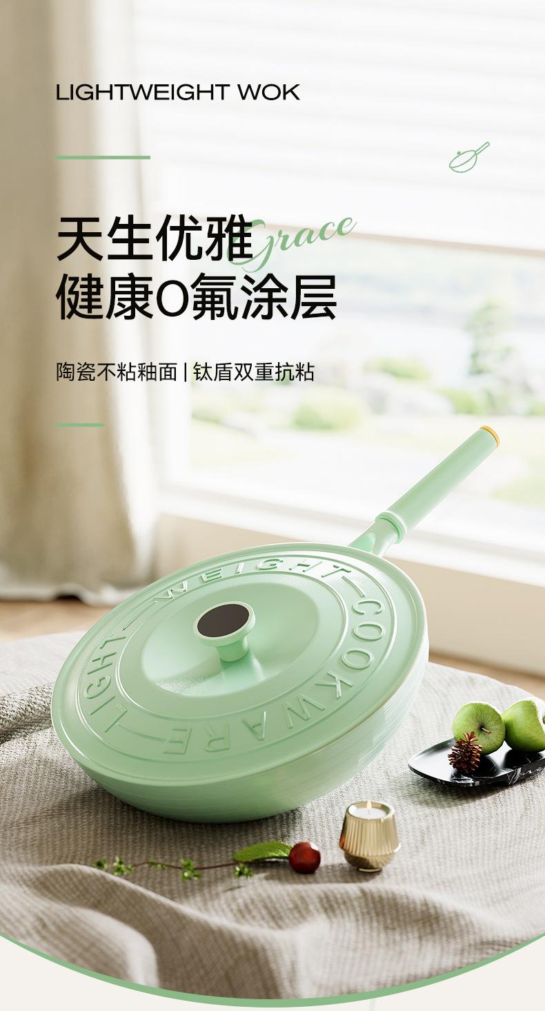 28cm mint green titanium shield wok "0 fluorine coating"/without lid