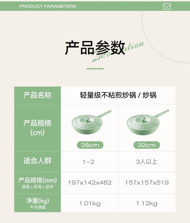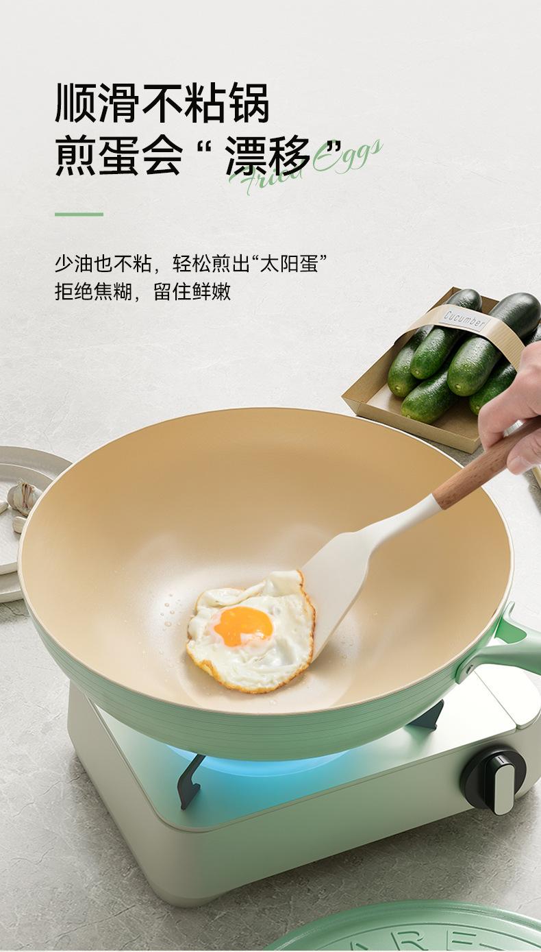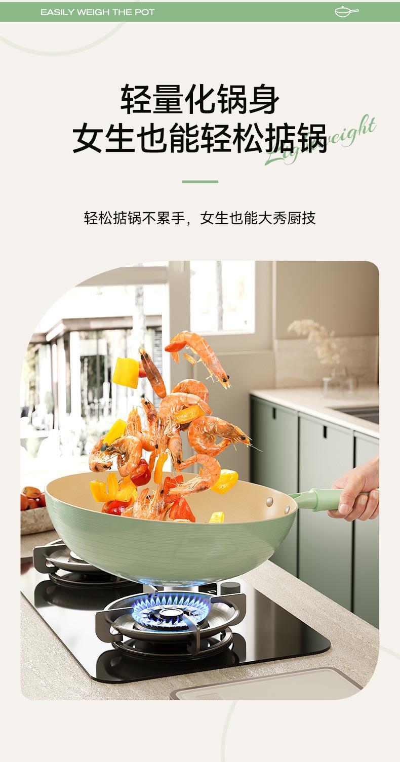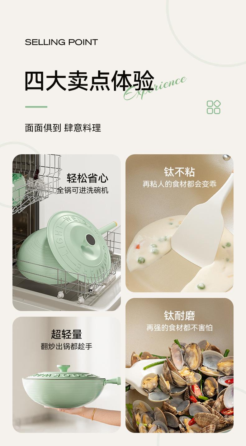 28cm mint green titanium shield wok "0 fluorine coating"/without lid