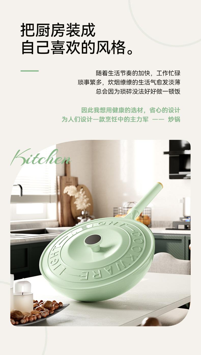 32cm mint green titanium shield wok "0 fluorine coating" + flat wave iron cover