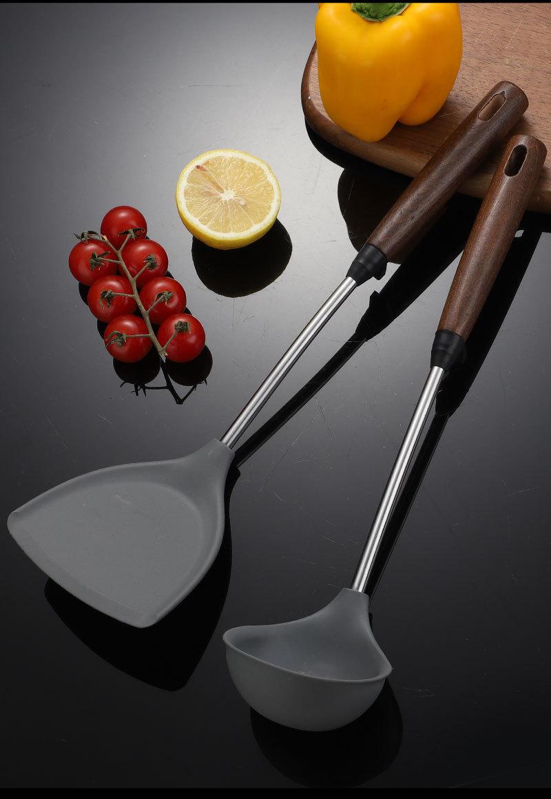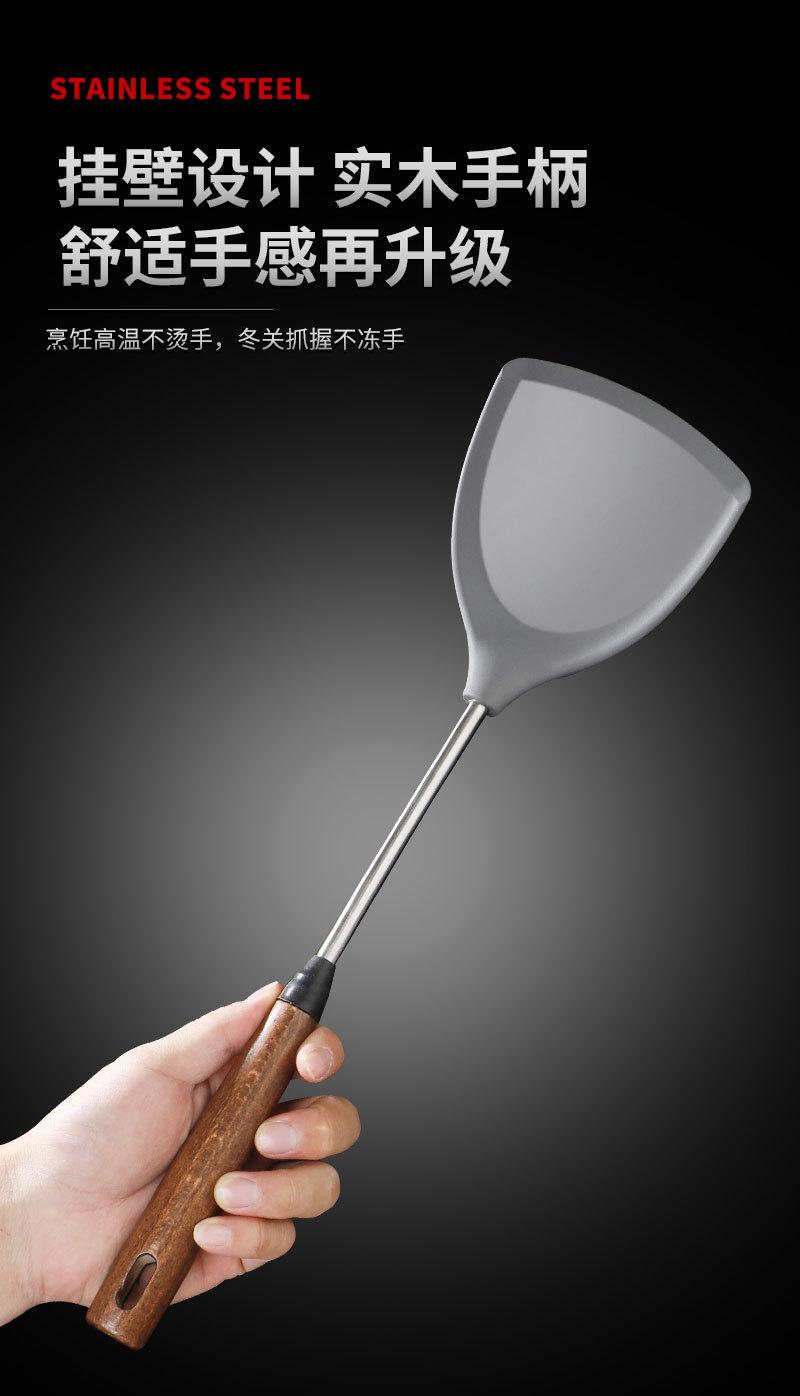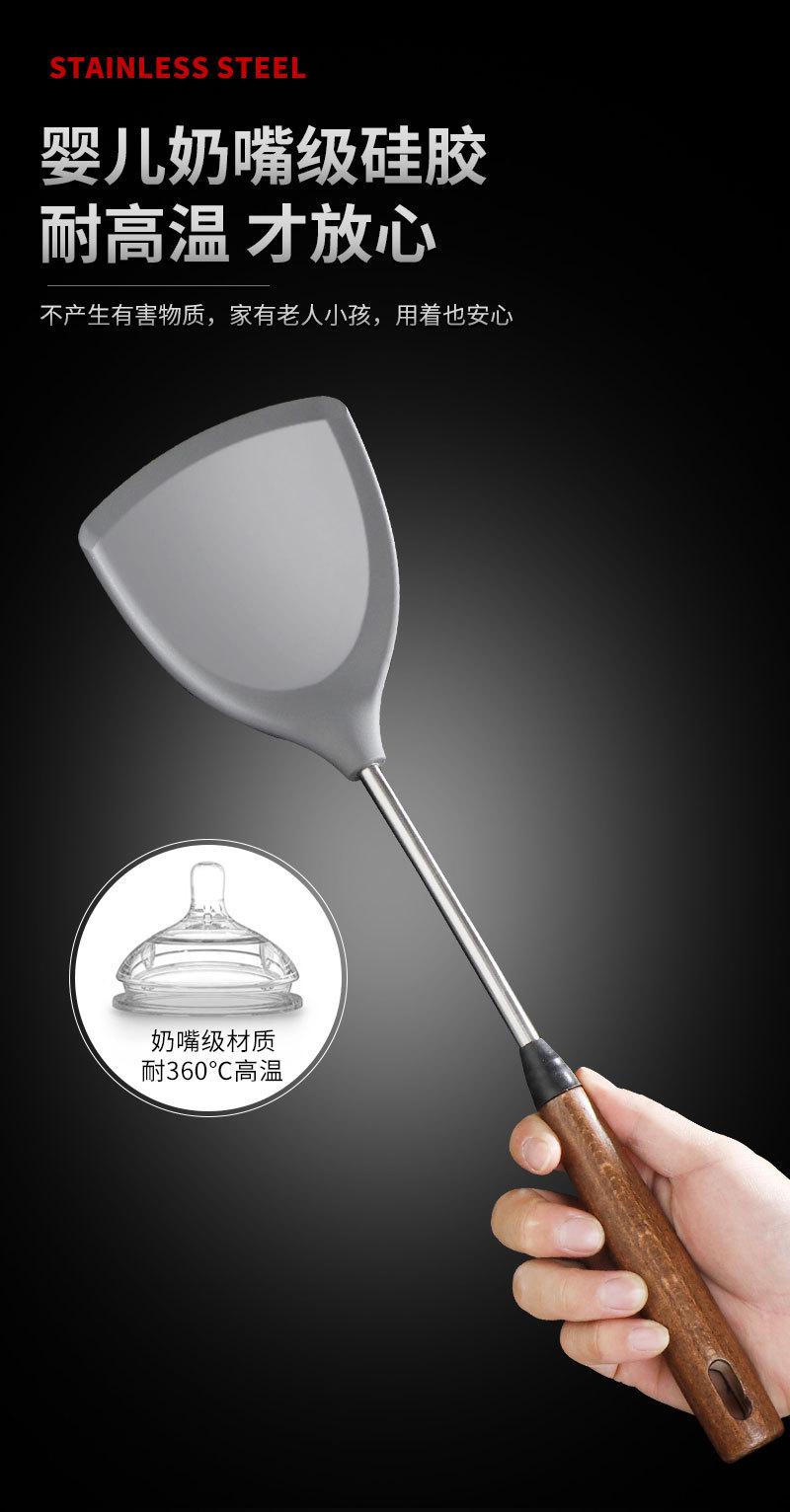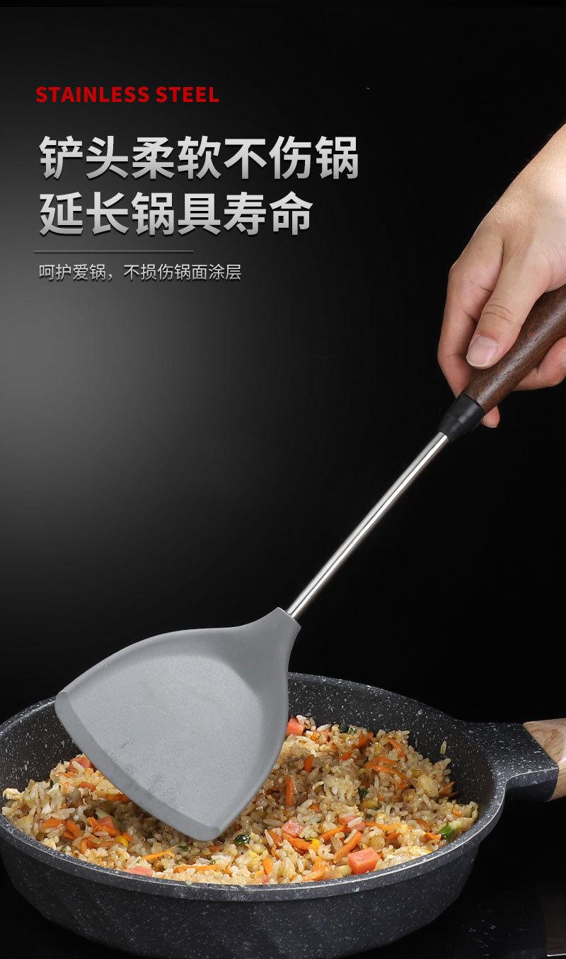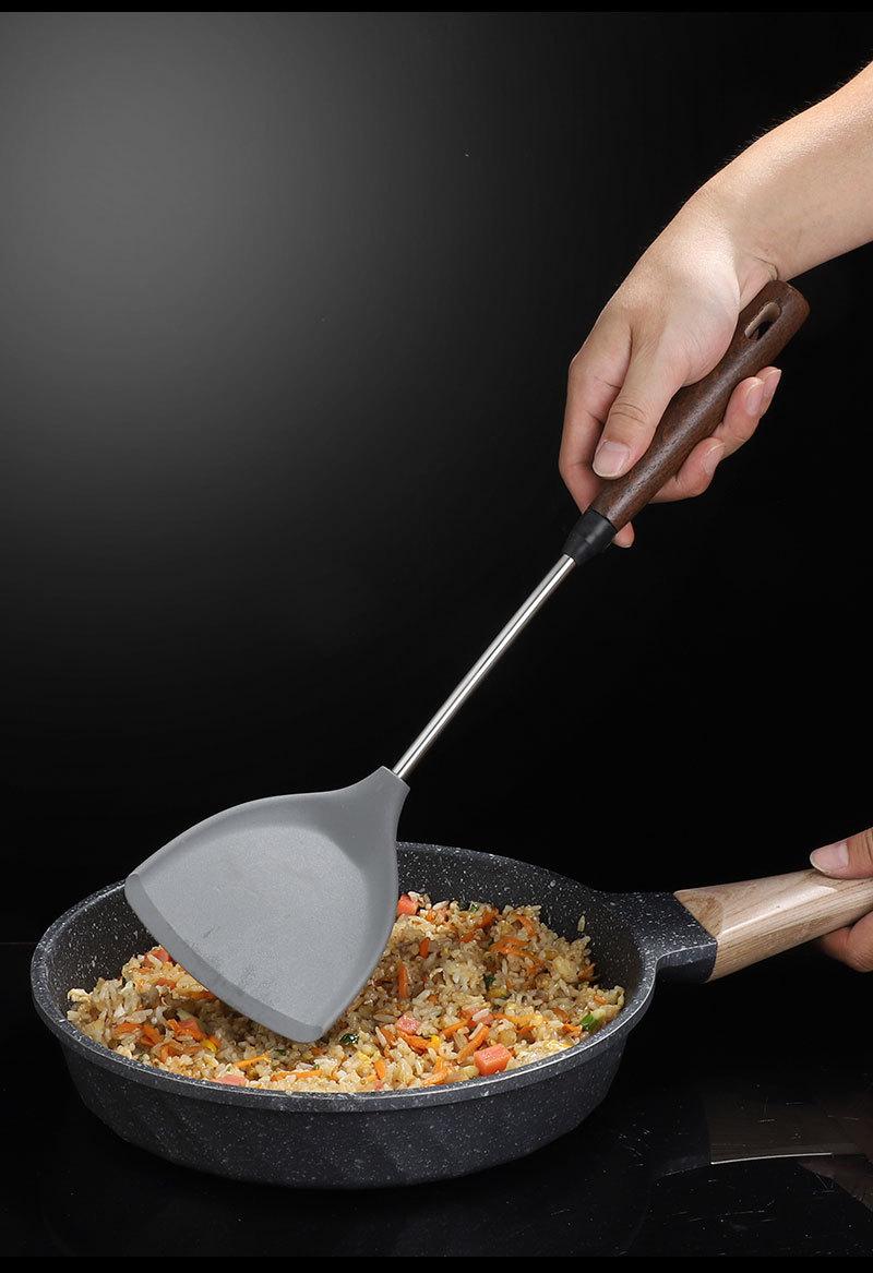 Pala de silicona resistente a altas temperaturas, pala antiadherente para sartén, apta para uso doméstico, cuchara para saltear de grado alimenticio, cuchara para sopa, pala para saltear anti-escaldaduras