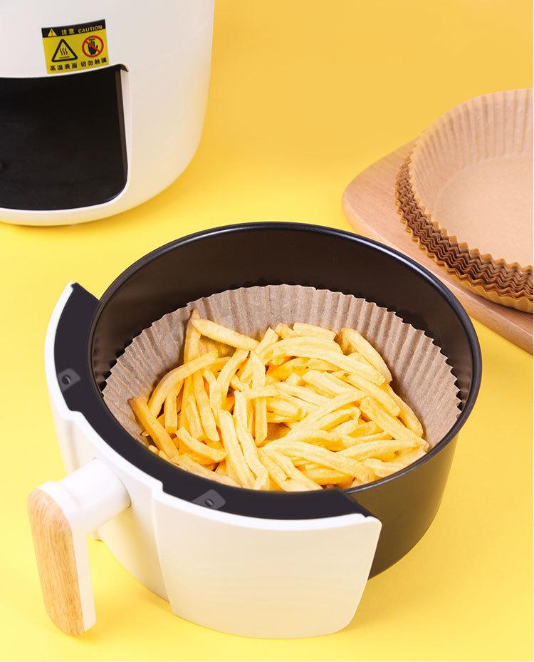 Papel absorbente de aceite para freidora de aire, material de grado alimenticio no contiene agente fluorescente, la sartén antiadherente no se quema, fácil de freír al aire, diseño realzado y engrosado con profundidad incorporada, índice de resistencia al calor MAX, horneado a 220℃, impermeable y a prueba de aceite, aísla las manchas de aceite y no necesita limpieza, un papel es compatible y se puede colocar en cualquier lugar, se puede usar como papel para vaporera, papel para plato, hecho de pulpa de madera, seguro y respetuoso con el medio ambiente, aísla las manchas de aceite y protege la olla, fácil y rápido de tomar y poner, un papel te ayuda a disfrutar de comida sin aceite.