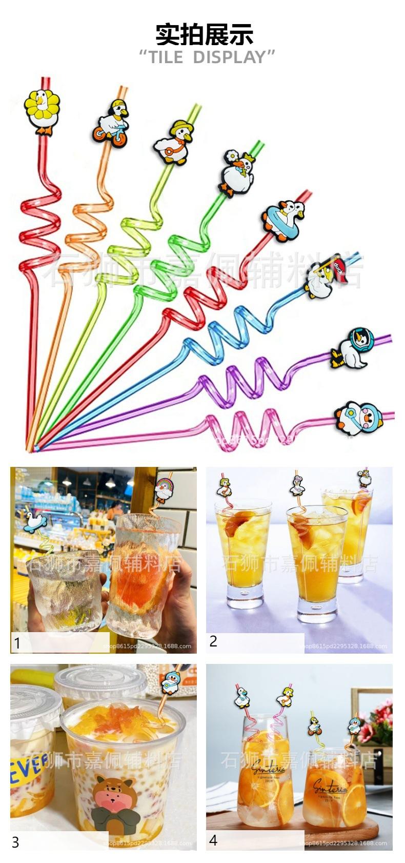 Pajita de pato Cole PETG con espiral de paja, diseño de dibujos animados, con hebilla, parche de grado alimenticio, accesorios decorativos