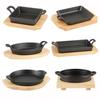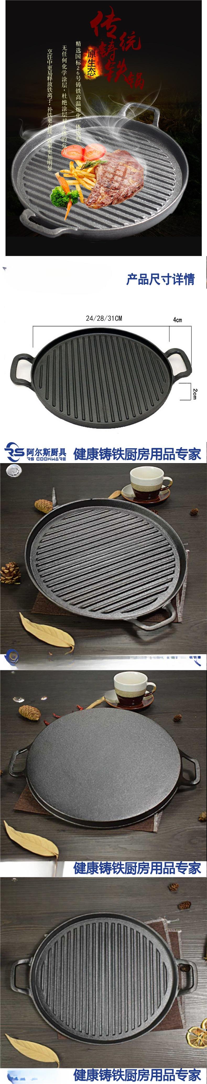 Sartén redonda plana rayada binaural de hierro fundido plato para barbacoa plato para barbacoa rayado sartén para bistec de restaurante occidental