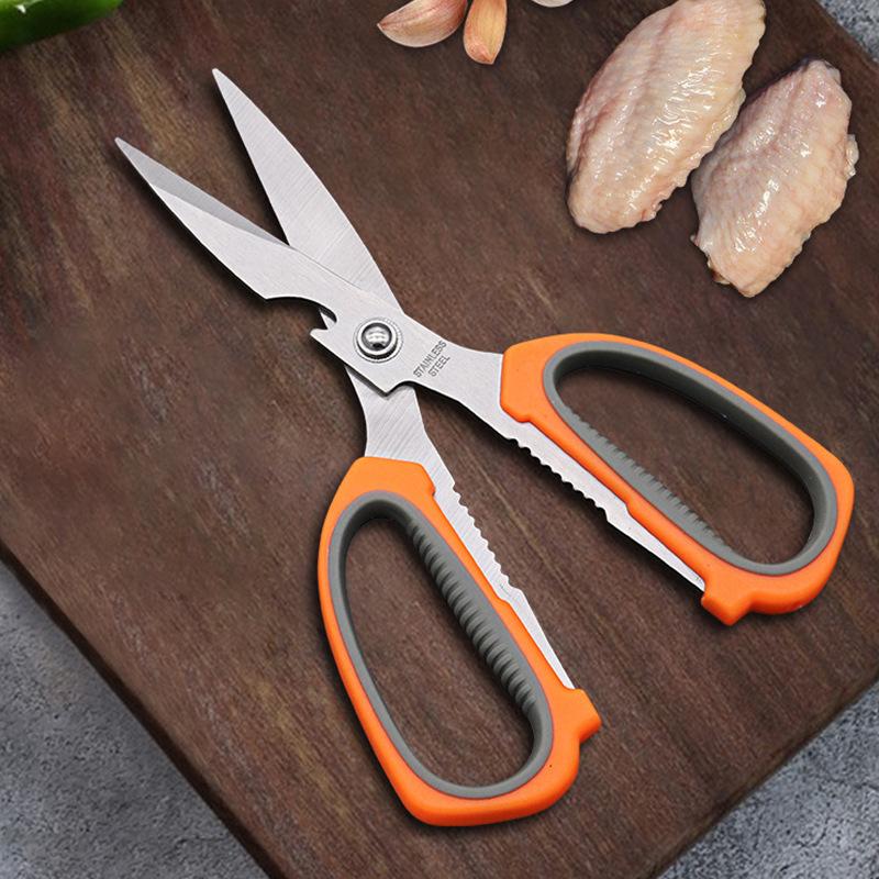 Tijeras de cocina de acero inoxidable, multifuncionales, para el hogar, para cortar huesos de pollo, abrebotellas, tijeras de barbacoa coreanas de nogal.