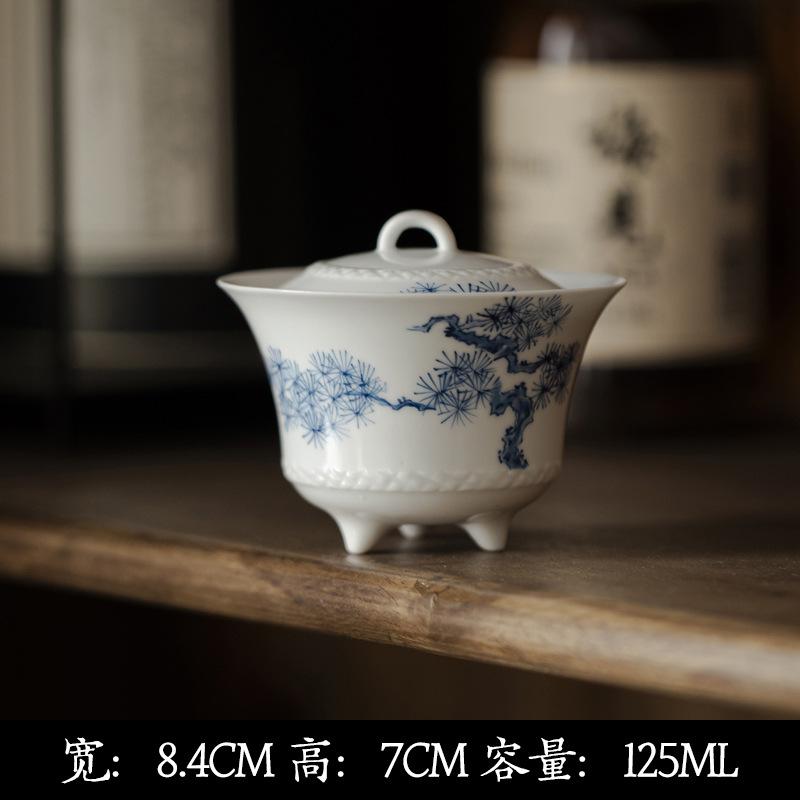 Juego de té de kung fu de tres patas Songfeng pintado a mano con barro de jade Moji, cuenco con tapa de cerámica, tetera, taza de té, colección de accesorios para la ceremonia del té