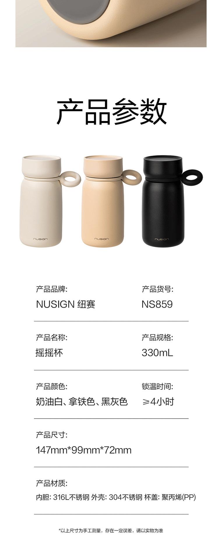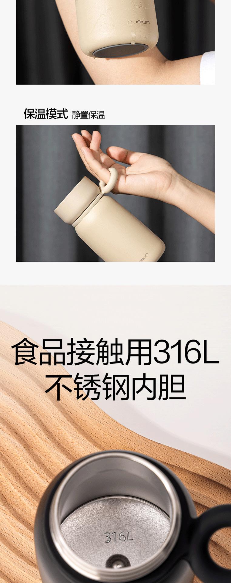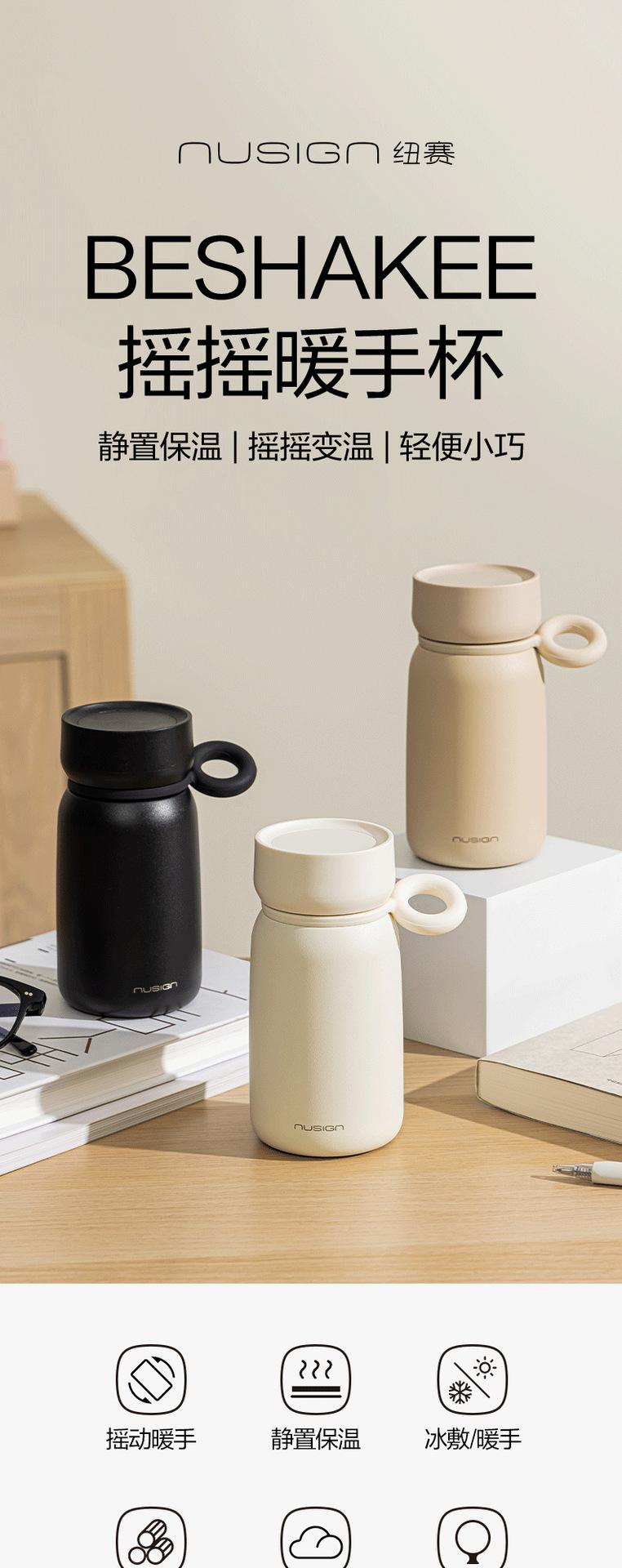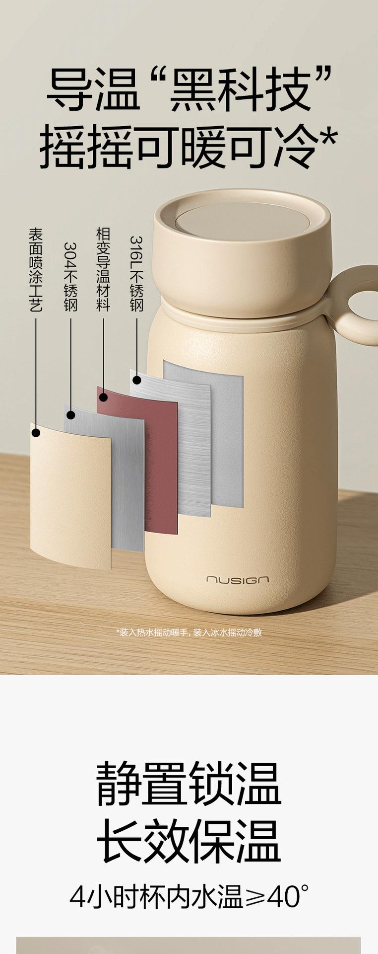 Nusai NS859 Vaso Agitador 340mL_SUS316L Vaso de Mano Vaso Termo Ligero Compacto con Asa para Trabajar